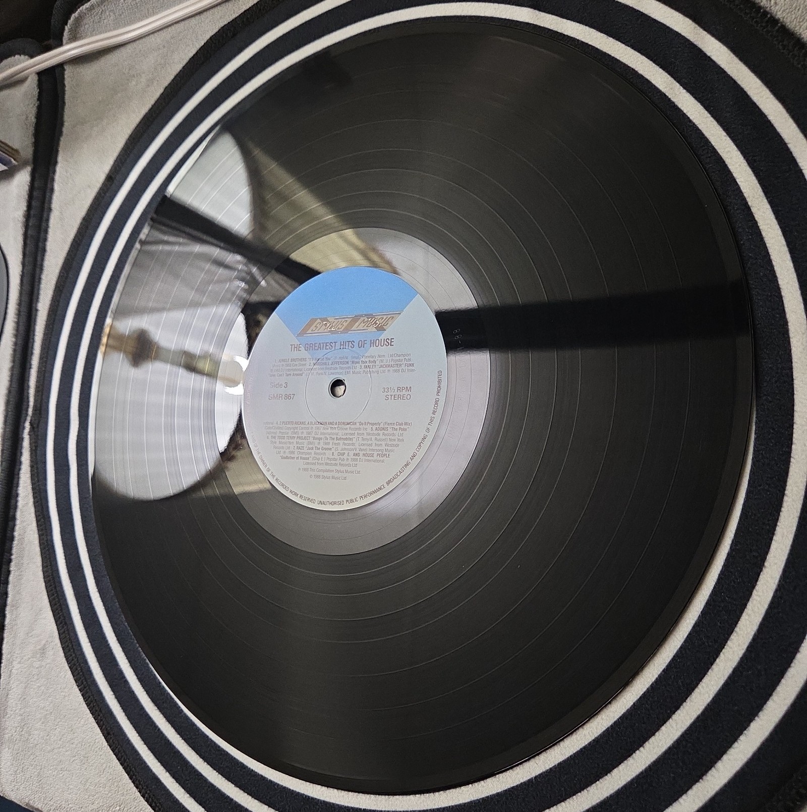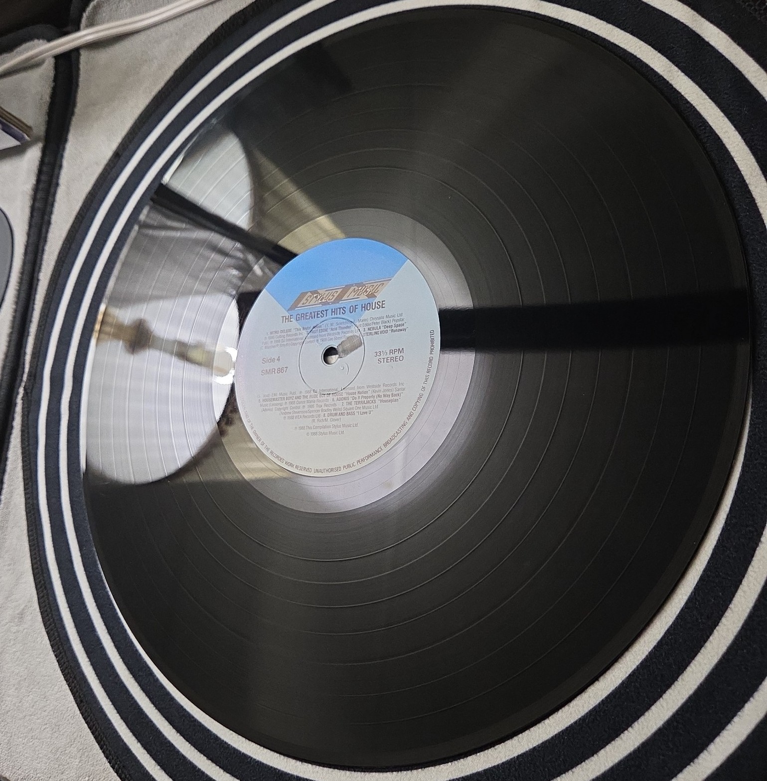 If you like house music this give you a little bit of everything, You won't find many of these unless you buy them from overseas, a slight split on top of the cover overall cover in VG condition....Side 2 plays almost perfect until it gets to track 3 and it does have a pressing defect loop skip that you do have to move the needle a centimeter to keep it going on...I have 3 turntables and 2 of the turntables it didnt skip but just disclosing just in case ...side 1 and 3 and 4 do have a couple ticks and pops but nothing major VG+.... overall plays awesome...NO RETURNS ON RECORDS..ALL SALES FINAL