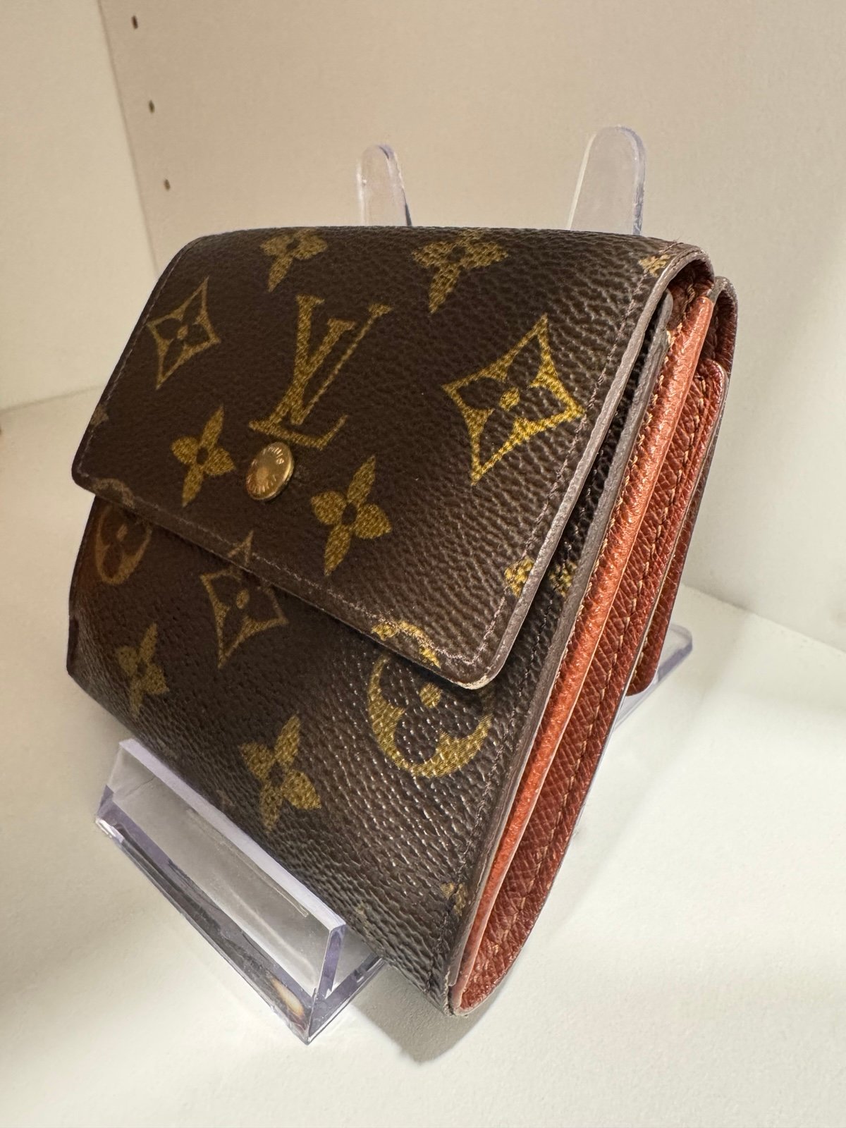 The Elise Wallet opens up as a foldable wallet for cash and on the opposite side these is a change pocket with snap closure. In good condition. Interior leather has minimal marks and some edge wearing. Exterior canvas is in excellent condition. Hardware has moderate tarnishing. Imperfections are shown in photo. Has no odor. Interior date stamp confirms authenticity. Will not accept low offers.