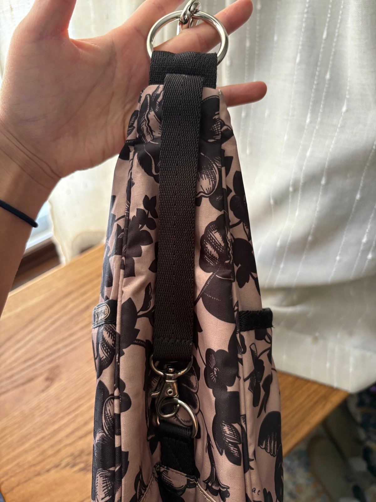 Internal slip pockets. Central divider has a zip pocket and two insulated bottle pockets at the ends.