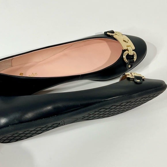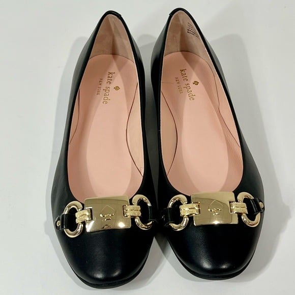Step out in style with these elegant black leather flats from Kate Spade. Perfect for any occasion.