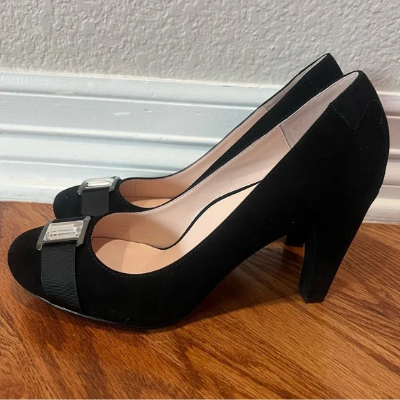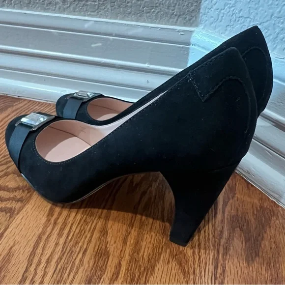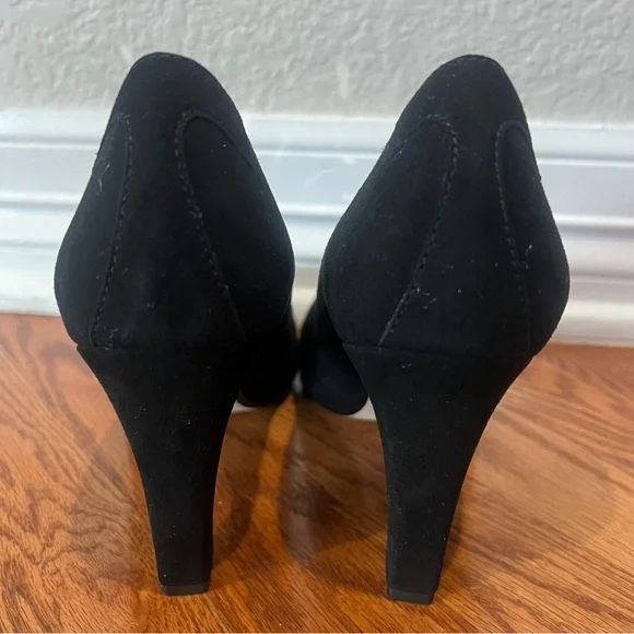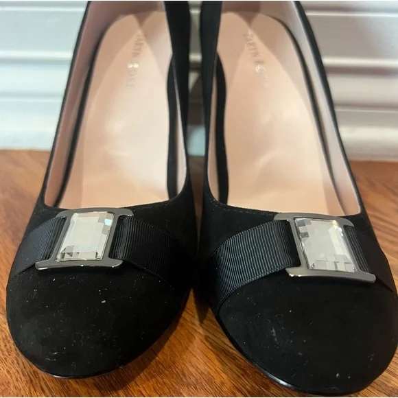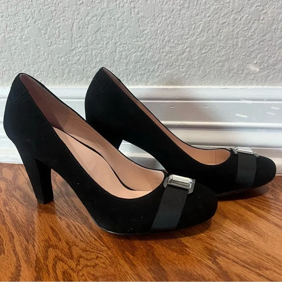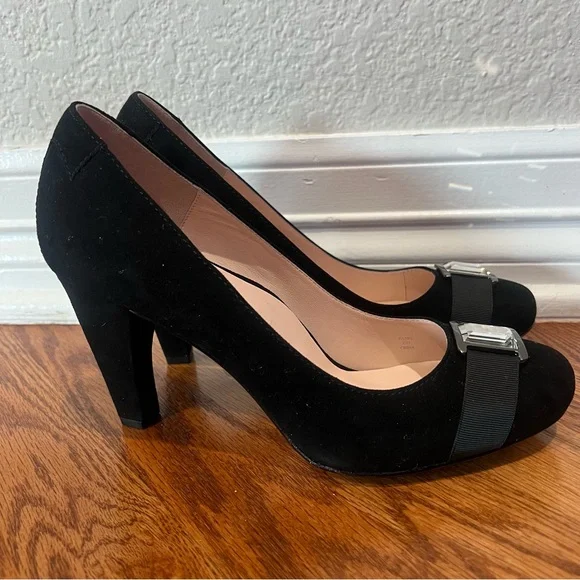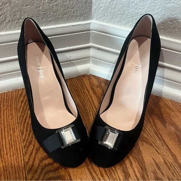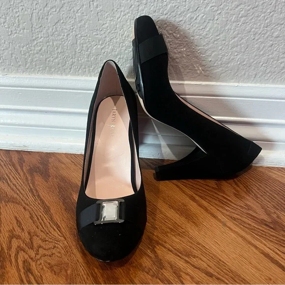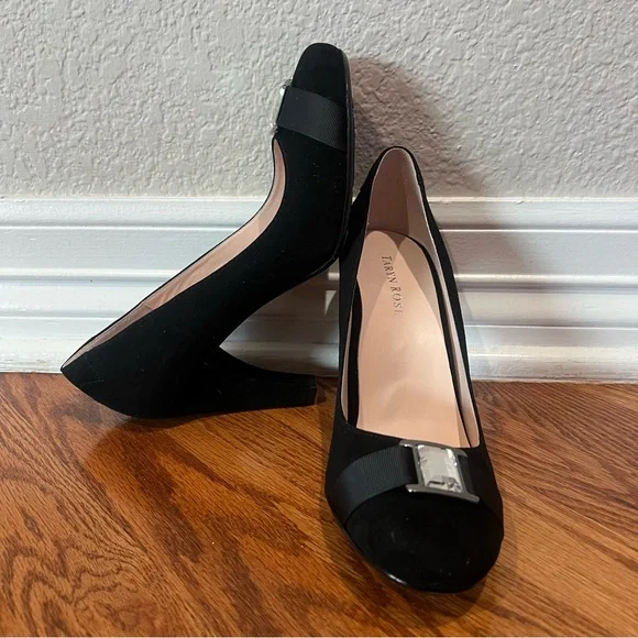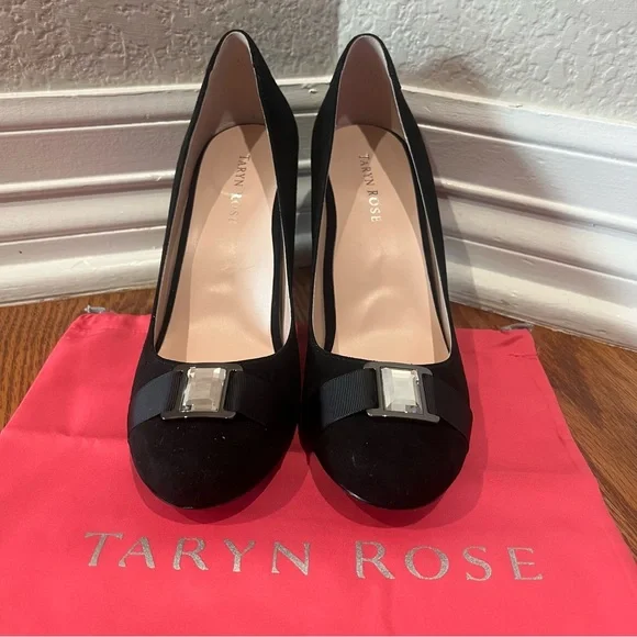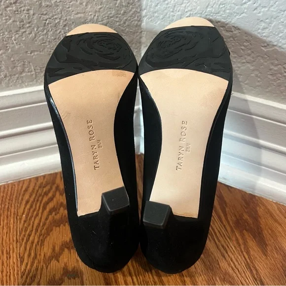 Elevate your shoe game with these stunning black suede pumps from Taryn Rose. The classic and elegant design features a round toe, slip-on closure, and a high block heel that is perfect for any occasion, whether it's for travel, weddings, parties, or even for business. The cap toe feature adds a touch of sophistication to these pumps, which are perfect for any season, including winter, summer, fall, and spring.These pumps are available in size 8.5M and are perfect for women who love to make a statement with their shoes. The Taryn Rose brand is known for its exquisite craftsmanship and attention to detail, making these pumps a great investment for any stylish woman.