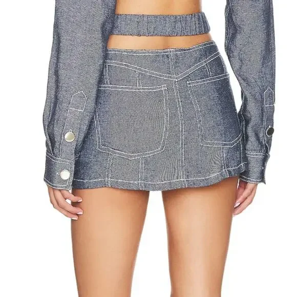H:ours Altagracia Skort in Blue Grey NWOT Size Small Self: 50% linen, 50% rayonLining: 100% cottonMade in ChinaHand washBuilt-in shorts liningZip fly with button closureWaistband cut-out designBack slip pocketsItem not sold as setSkort measure approx 10.5" in lengthRevolve Style No. HURR-WF33Pants and Jacket/Top sold in seperate listings - add to a bundle to save more $
