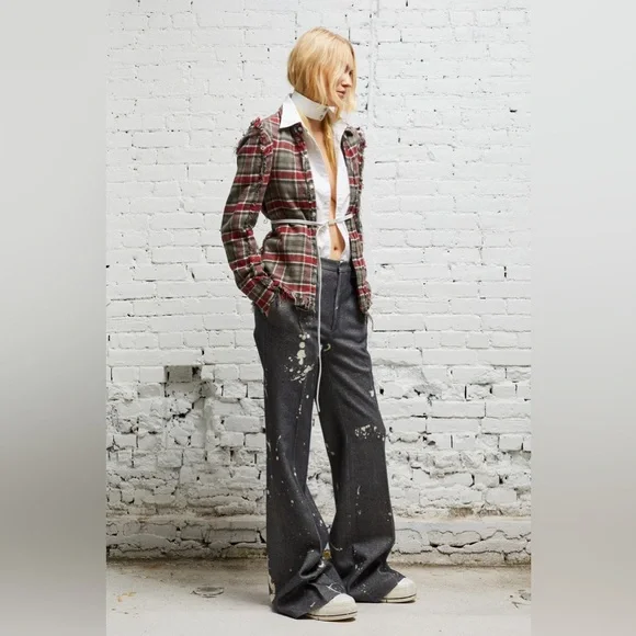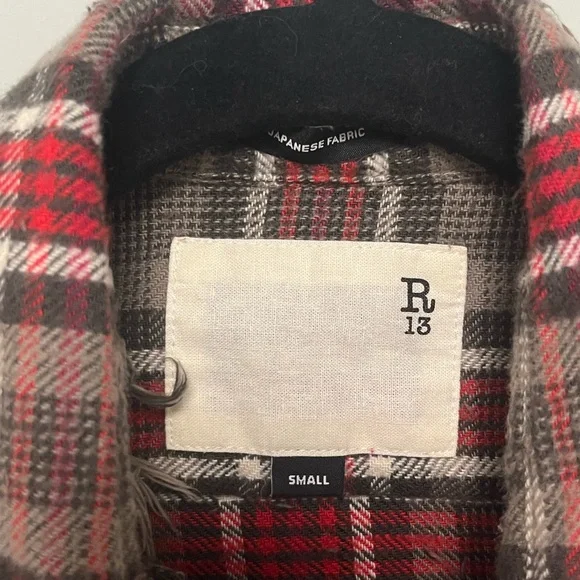 R13 Flat Sleeve Shirt - Grey PlaidSize small Brand new without tags. $595.00 USD FITTED BUTTON-UP SHIRT BUILT FROM JAPANESE COTTON AND FEATURING SHREDDING AT THE CUFFS, RAW SEAMS AND A DOUBLE PLACKET CLOSURE.COLOR: GREY AND RED PLAID100% COTTONREESE IS 5'11" AND WEARING SIZE MBUST 30"; WAIST 23"; HIPS 34"R13WR174-R227BIMPORTED