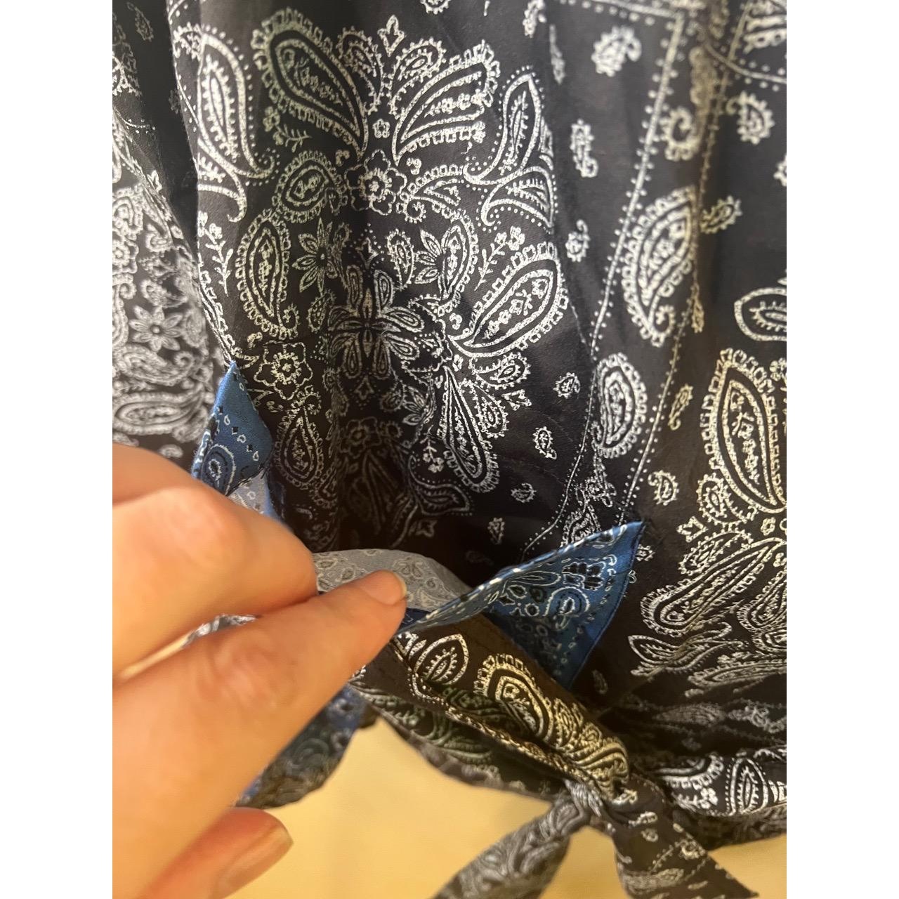 This stylish Zara kimono jacket features a striking bandana print and a tied waist that gives you the option to wear it with or without the belt. Its bold mix of black and blue colors and long sleeves make it both unique and versatile for your wardrobe.