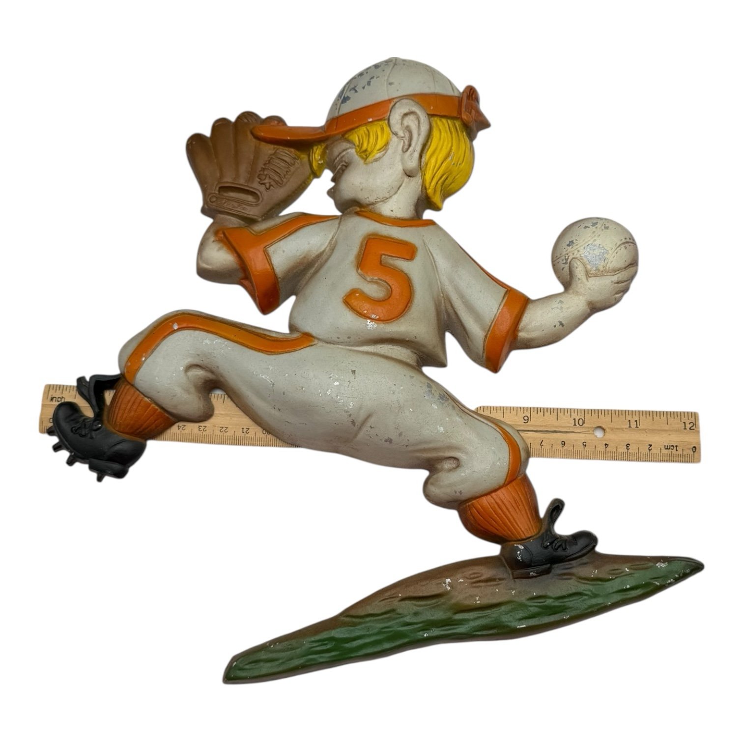 Vtg 1970 Sexton Metal Wall Plaque Baseball Player Pitching Orange Gray Uniform