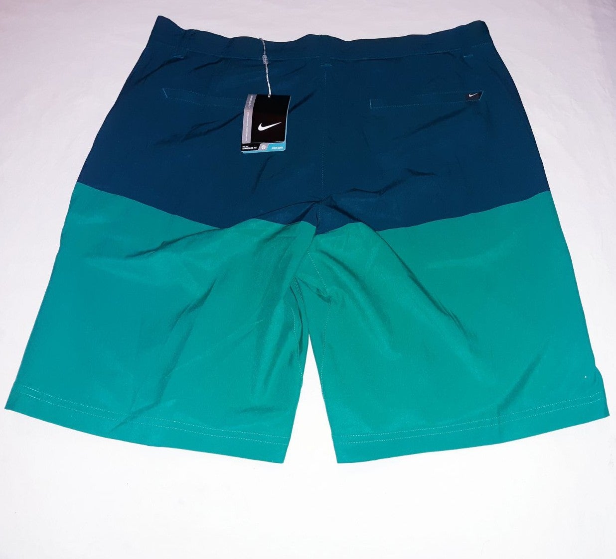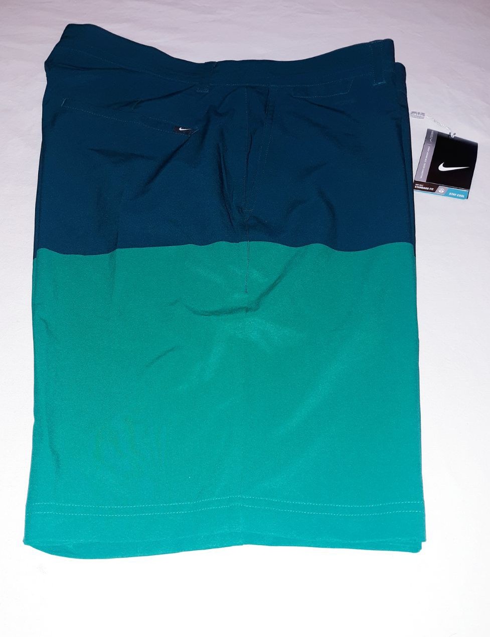 New with tags. These Nike Modern fit golf shorts offers a lightweight Polyester cotton blend which offers superb comfort for your trip around the course. 4 pocket design with slanted front pockets and score card separate pocket. Single fasten front with zipper closure and Nike small wordmark patch over right rear pocket. 2 toned teal pattern offers a unique, one of kind appearance. Any questions, please contact me. Immediate shipping with purchase.