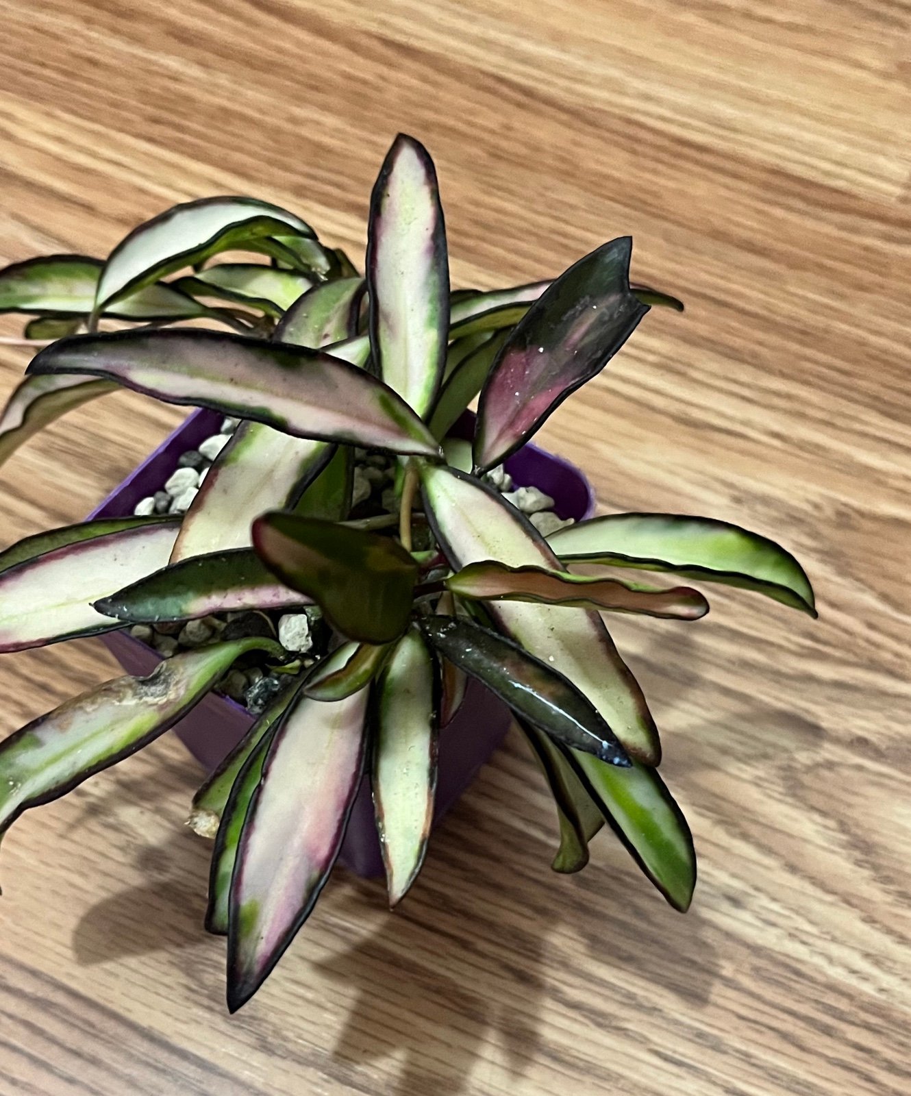 Hoya Wayetii. Rooted in pon, also has leca around the roots. Beautiful colors with multiple growth points and new growth coming in. Please see the couple leaves with defects. This is the exact plant you will receive.