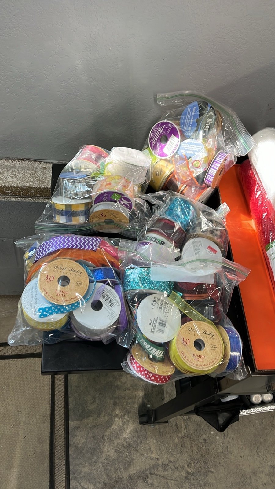 5 gallon size ziplocks of various sizes, colors, etc of many new & some used ribbon - roughly counted apx 40 different ribbon rolls