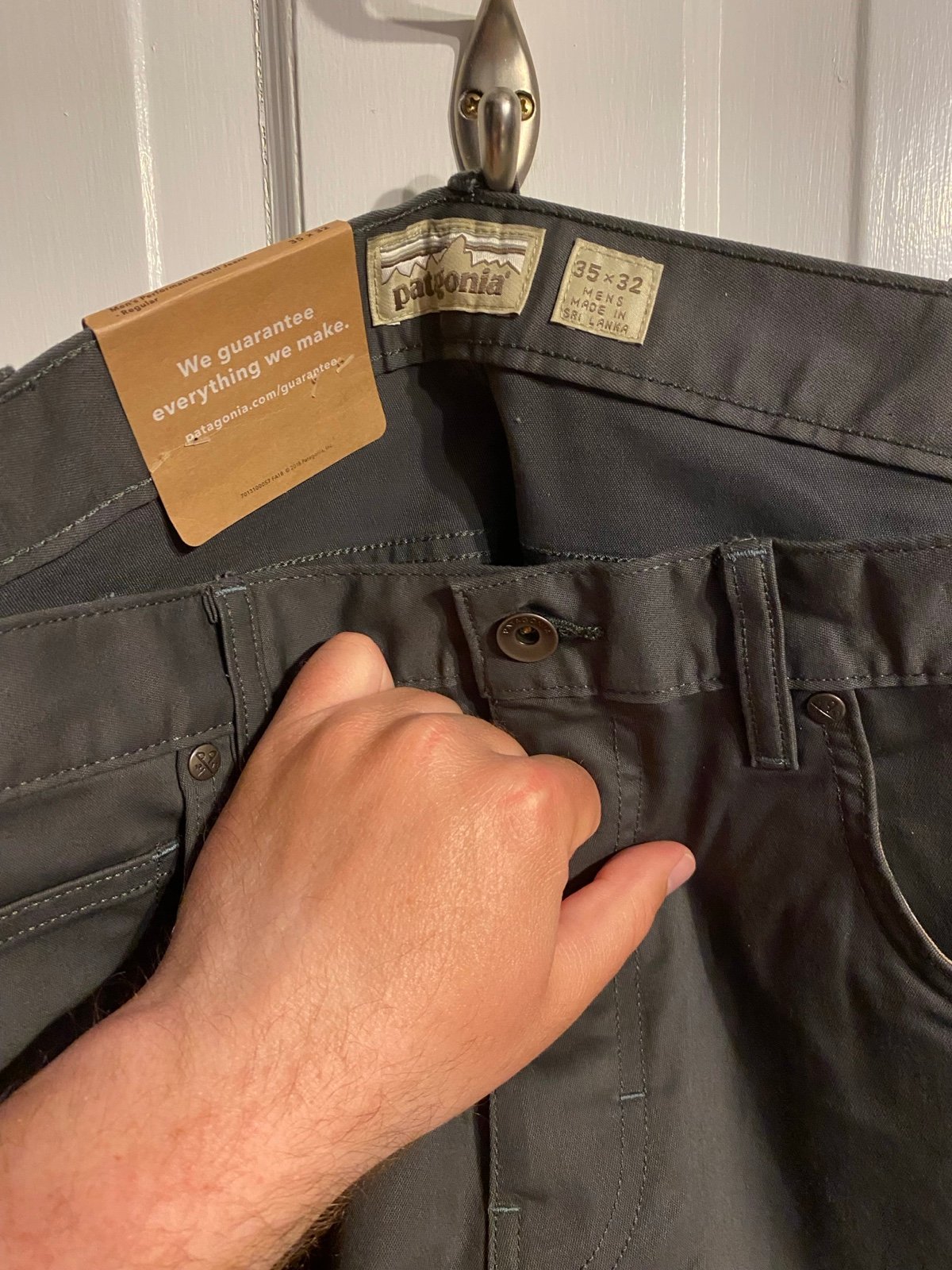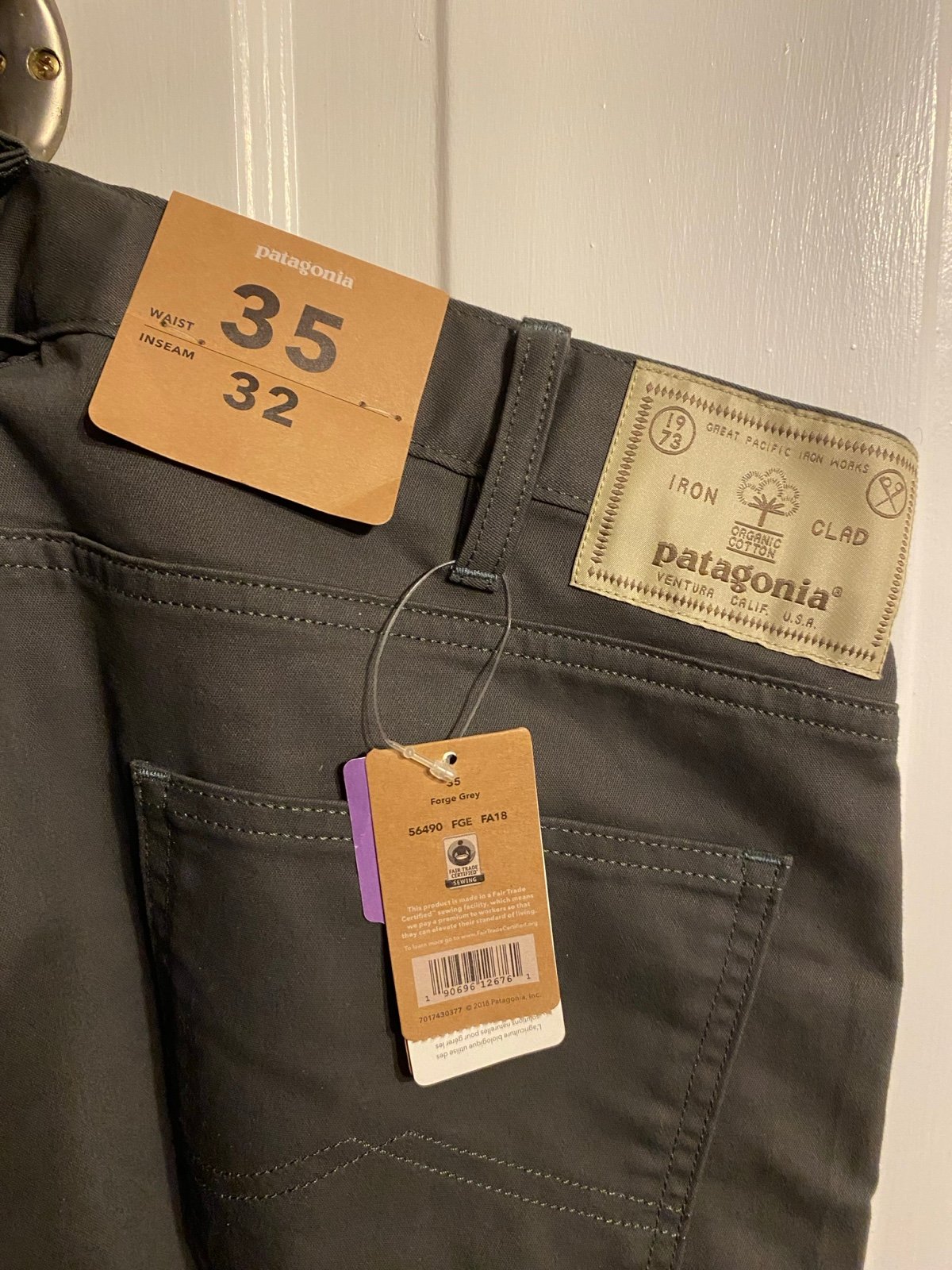 Men's Patagonia 5 pocket twill pant. High functional pant, kind of like a hybrid between jeans and chinos. Super well made and durable. NWT , size 35/32 in Forge Grey. Were too small on me so these are available. Retailed new at $109 ( they price at $129 now !)