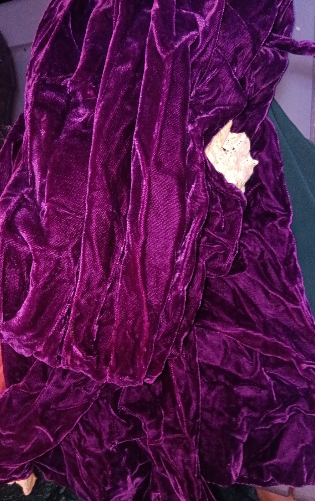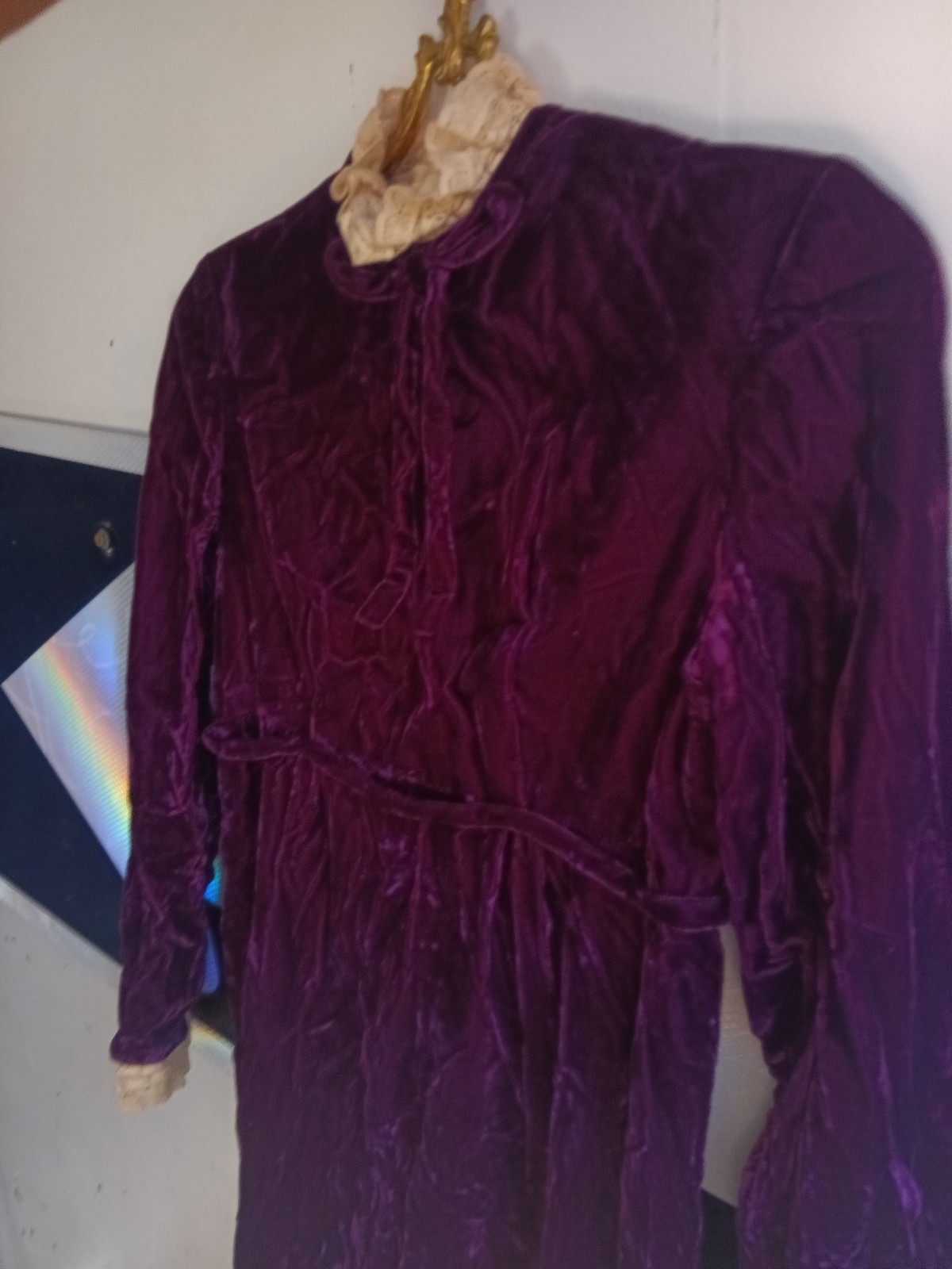 Vtg 1960s Lorrie Deb of San Francisco Rich Purple Crushed Velvet w/ Lace Trim Dress,