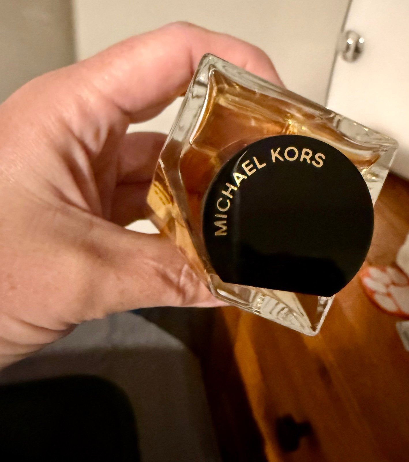 This is new and only has been smelled. I love to collect perfume and keep a display on my dresser but it’s gotten too full. My husband and family are always adding to it for holidays and I just need to downsize some I don’t use. This is very clean and sweet with a tiny hint of warm spice. It’s a great smell. It’s $122 at Macy’s or from MK. FREE SHIPPING! :-)