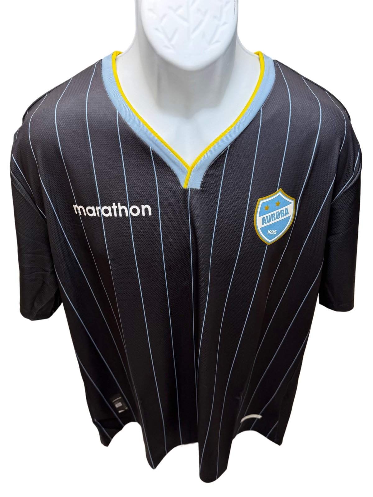 The Club Aurora Bolivia Equipo Del Pueblo Official Marathon Soccer Jersey 2022 in 2XL is an officially licensed fan apparel for supporters of the Aurora El Equipo Del Pueblo team. This unisex adult jersey in blue color represents the Ecuadorian team that participates in the Bolivian Soccer League. Made by the Marathon brand, this jersey is a must-have for fans looking to show their support for the team during matches and tournaments.