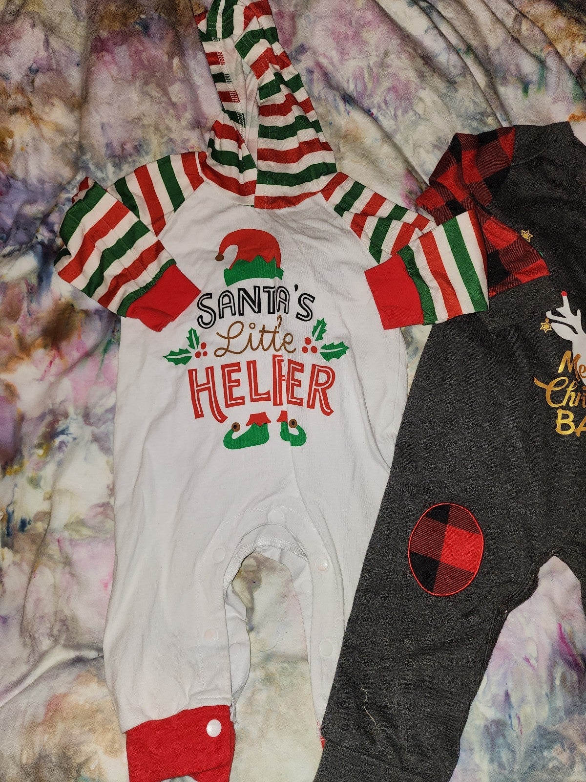 Christmas baby clothes bundle. Chipmuck disney outfut NWT, size 12-18mth. 3 christmas rompers, 12-18mth, 6-9mth, but they run much bigger. Both fit my lil guy at 15mths old. Like new Christmas sweaters, one grinche, one dress sweater, both 12mth. NWT christmas socks.