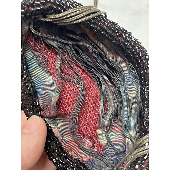 Antique Vintage 20th C. Dark Black Red Beaded Flapper Art Deco Glass Purse Bag