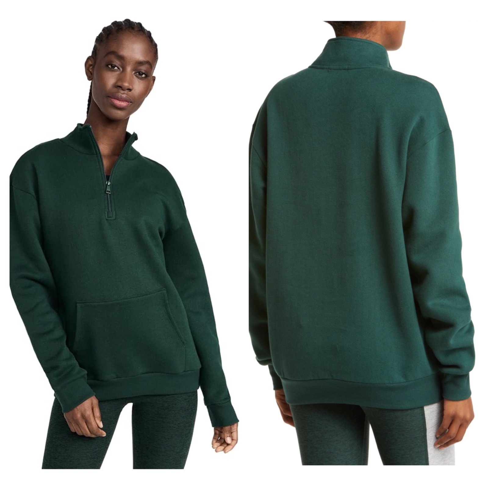 Perfect for post-workout cool-downs and casual weekend ensembles, this comfortable Beyond Yoga Recharge pullover features soft fabric, a quarter-zip neckline, and a roomy pouch pocket.