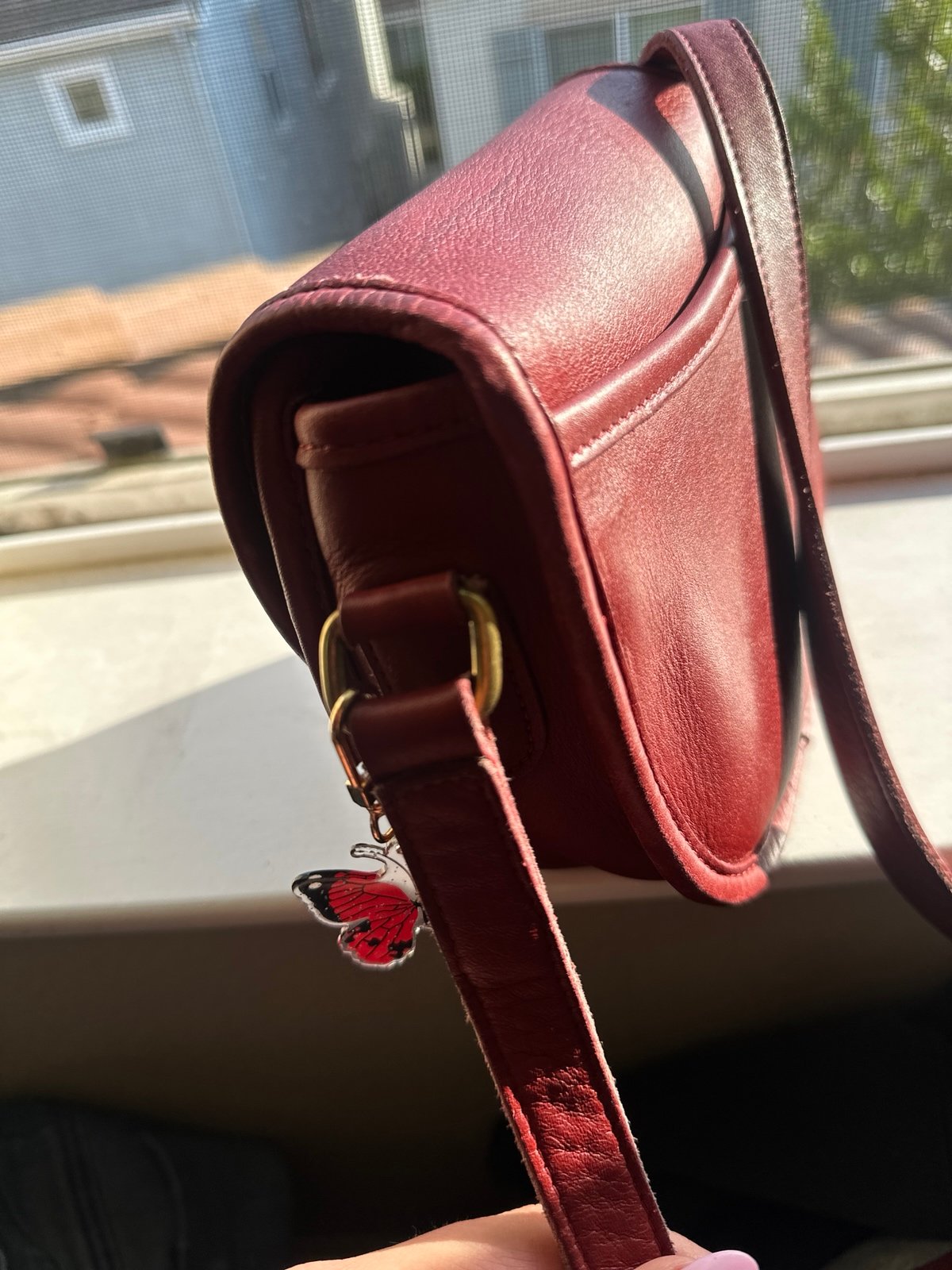 Vintage red leather authentic Coach crossbody from the 90s. A few flaws please check pictures but a beautiful bag. The story patch is why I bought it because of the stamp marks. The imperfections in the serial number shows how this purse was handcrafted. Sad to part with it but hopefully someone who really appreciates vintage purses will want to own it.