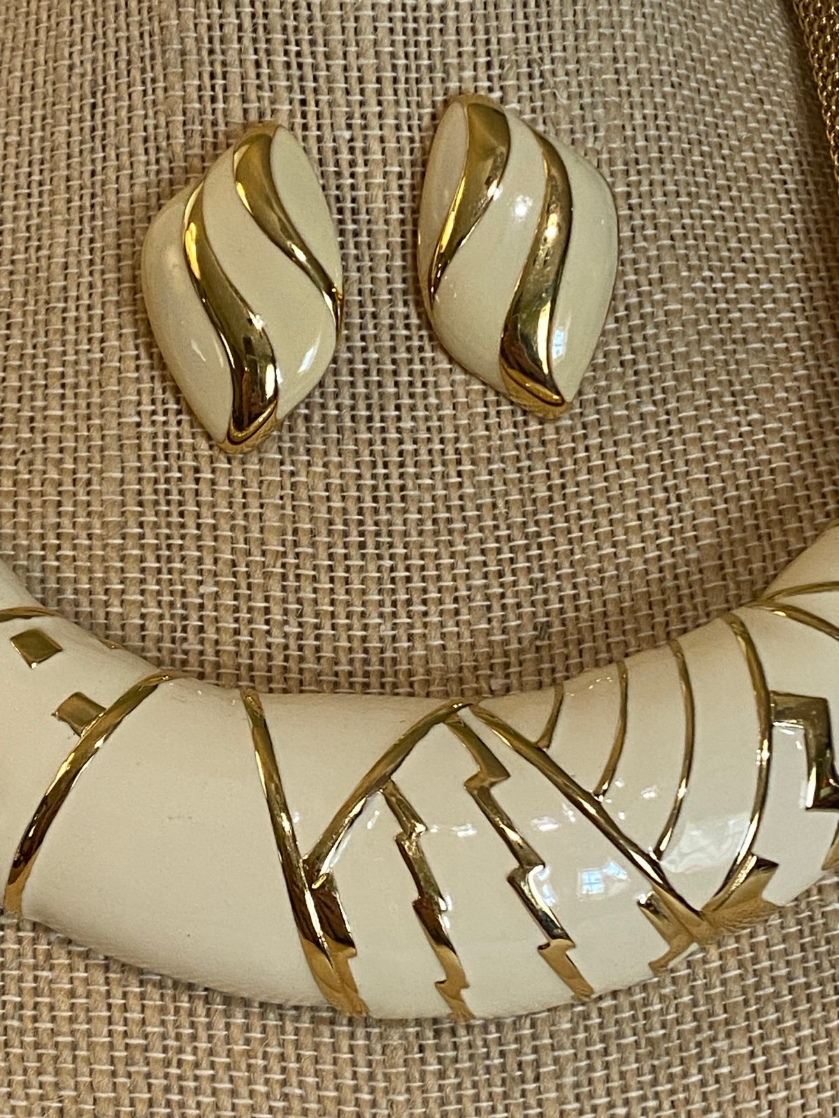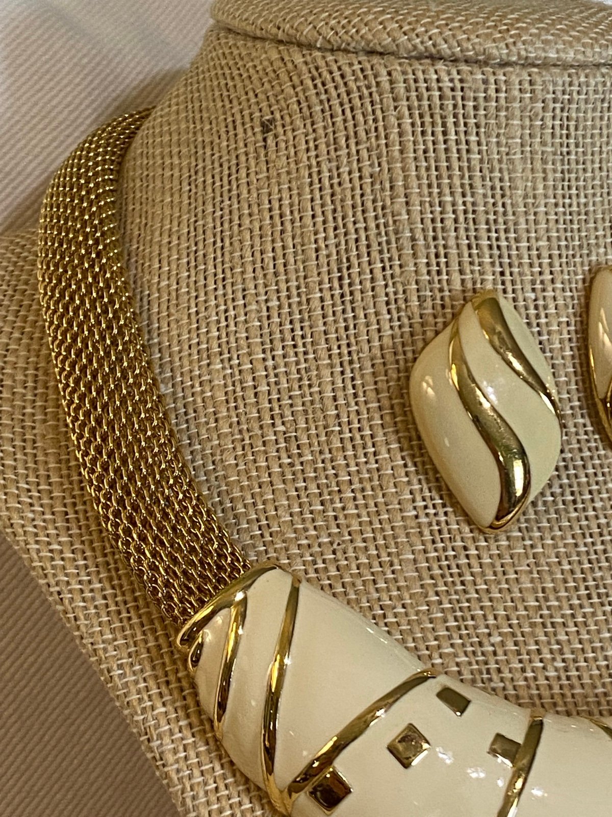 This is a gorgeous Monet necklace and earrings set! It appears to be in basically new condition. It's 17" with a gold mesh chain and a fold over clasp. Earrings 1.45". If you have any questions about the set or want more pictures, please let me know. Thank you for looking at my ad! Have a blessed day!
