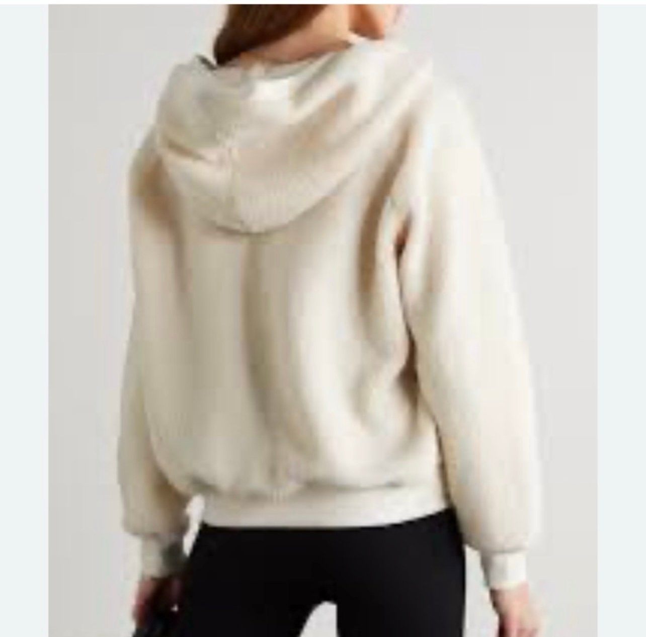 Cozy sherpa hoodie with contrast banded rib trim by Nili Lotan. Size Small, worn just a few times and in great overall condition. Retail $695.