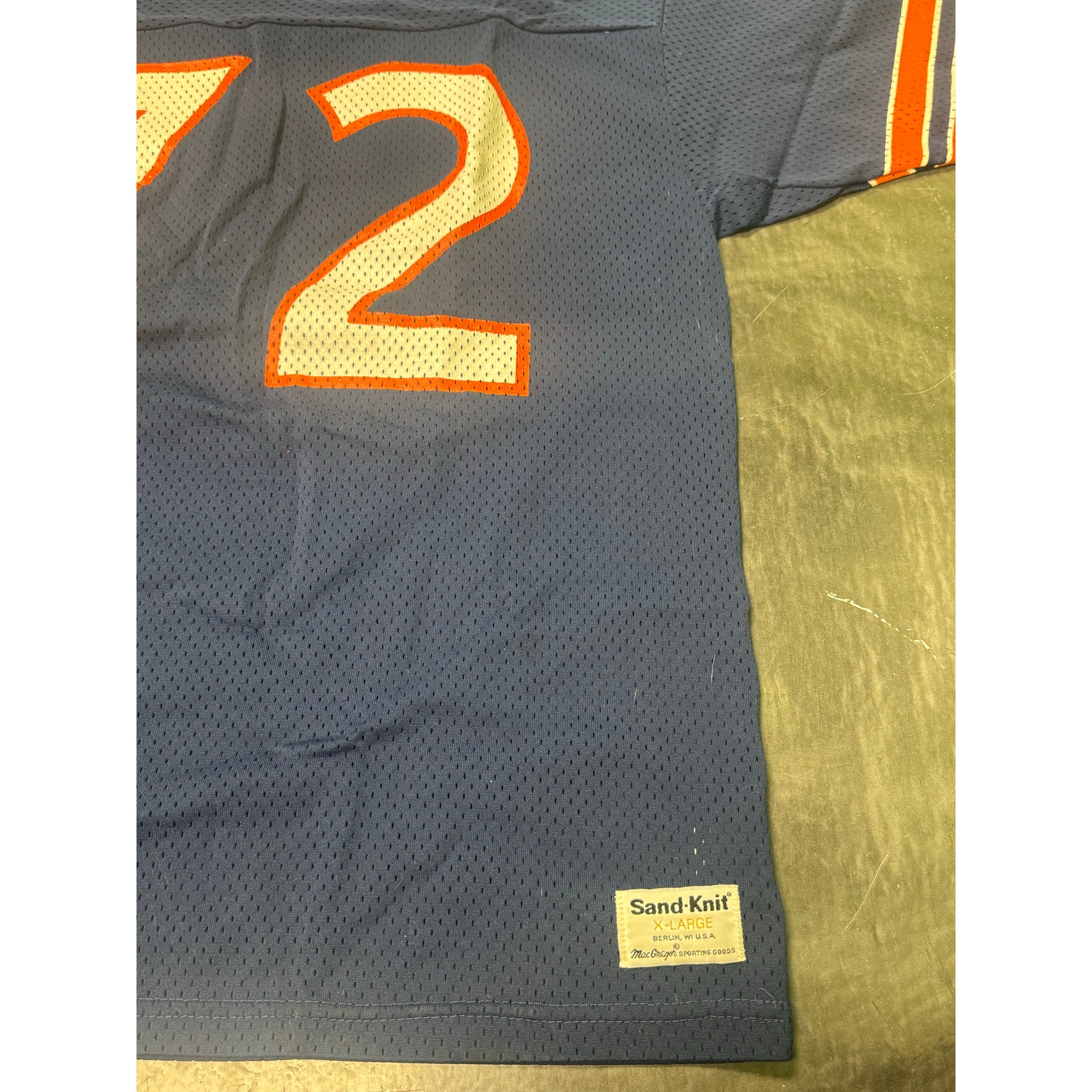 Length 30.5 laStep back into NFL history with this authentic vintage Chicago Bears jersey featuring number 72, likely paying tribute to Hall of Famer William "The Refrigerator" Perry. Made by Sand-Knit, a well-known athletic wear brand from Berlin, Wisconsin, this jersey embodies classic 1980s football style.
