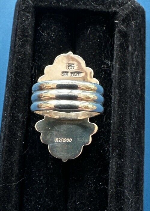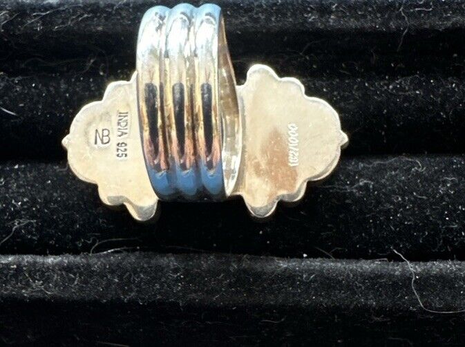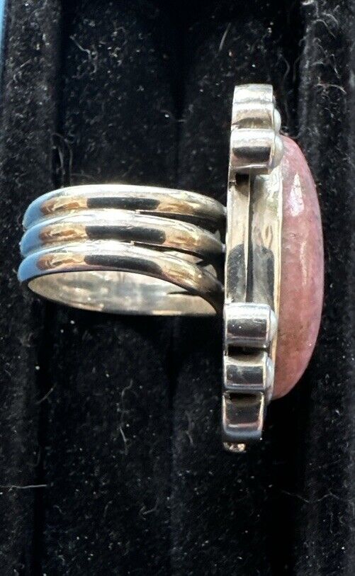 This is a unique and special edition Nicky Butler ring, with a limited edition of only 1000 made. The ring features a beautiful marquise-shaped rhodochosite gemstone in a bezel setting, with 13 gemstones in total including pearl and garnet. The ring is made of 925 sterling silver and is a size 10.