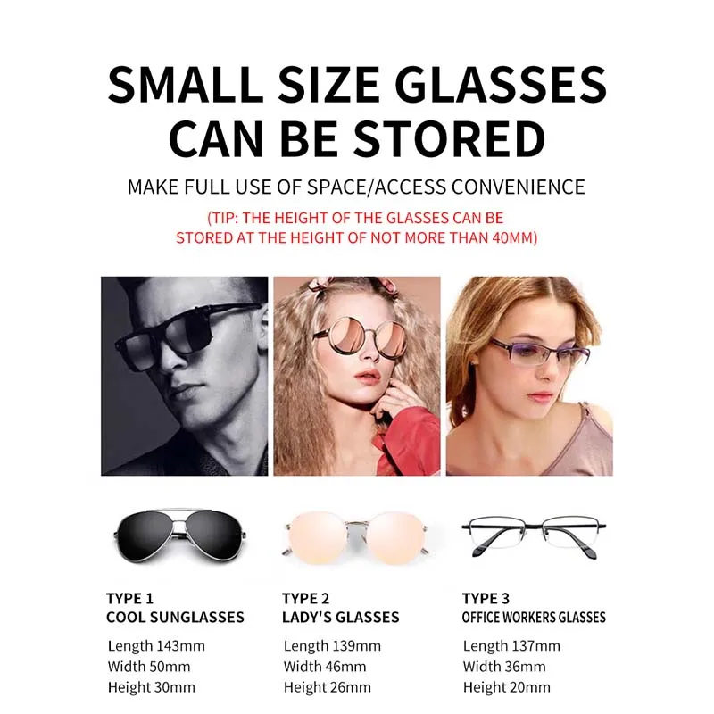 - Fits all sunglasses (height ≤1.57""/40mm): Aviators, wayfarers, sports glasses