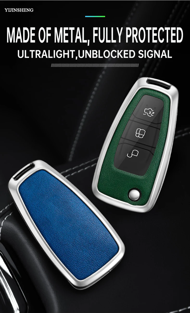 Zinc Alloy + Silicone Car Key Case Cover for Ford Fiesta Ranger C-Max S-Max Focus 3 4 Galaxy Mondeo Transit Tourneo Custom MK4