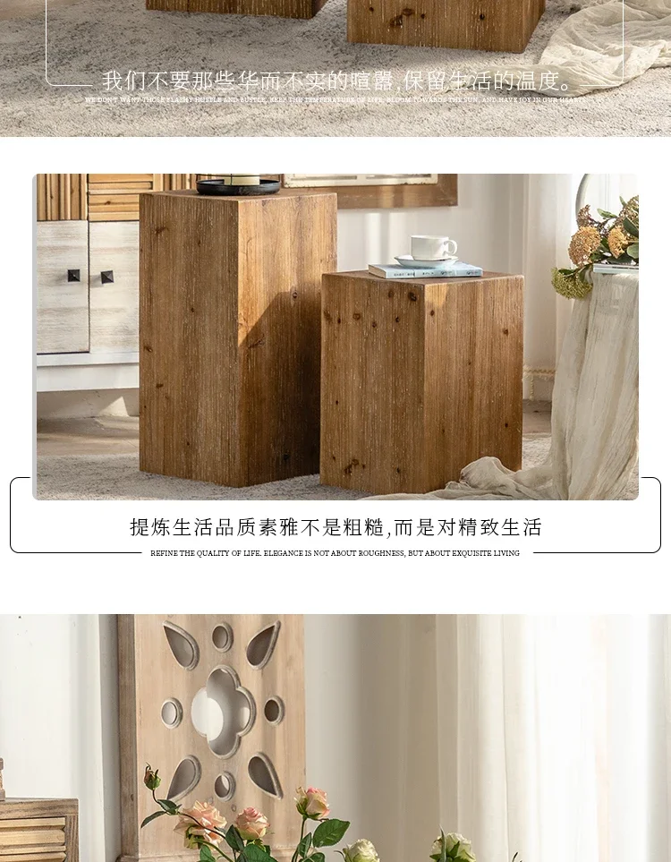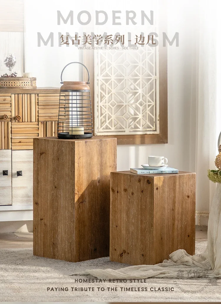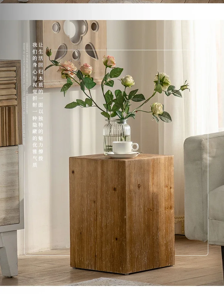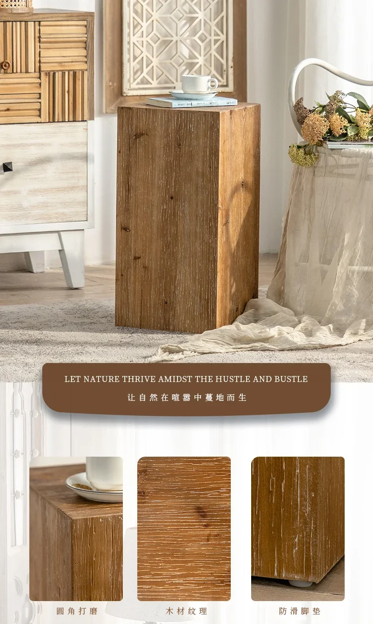 SEO Keywords: vintage side table, solid wood corner table, rustic small table, geometric art table, wooden stool, living room side table, wabi-sabi furniture, American retro table, wooden decor piece, durable wooden table