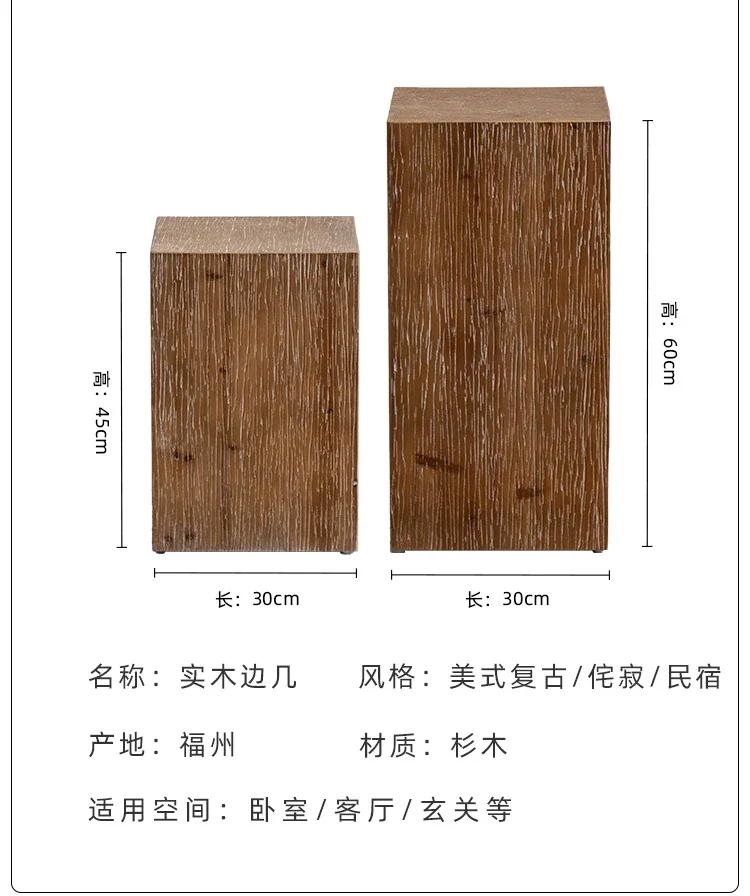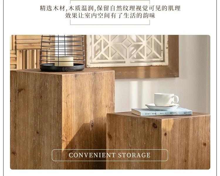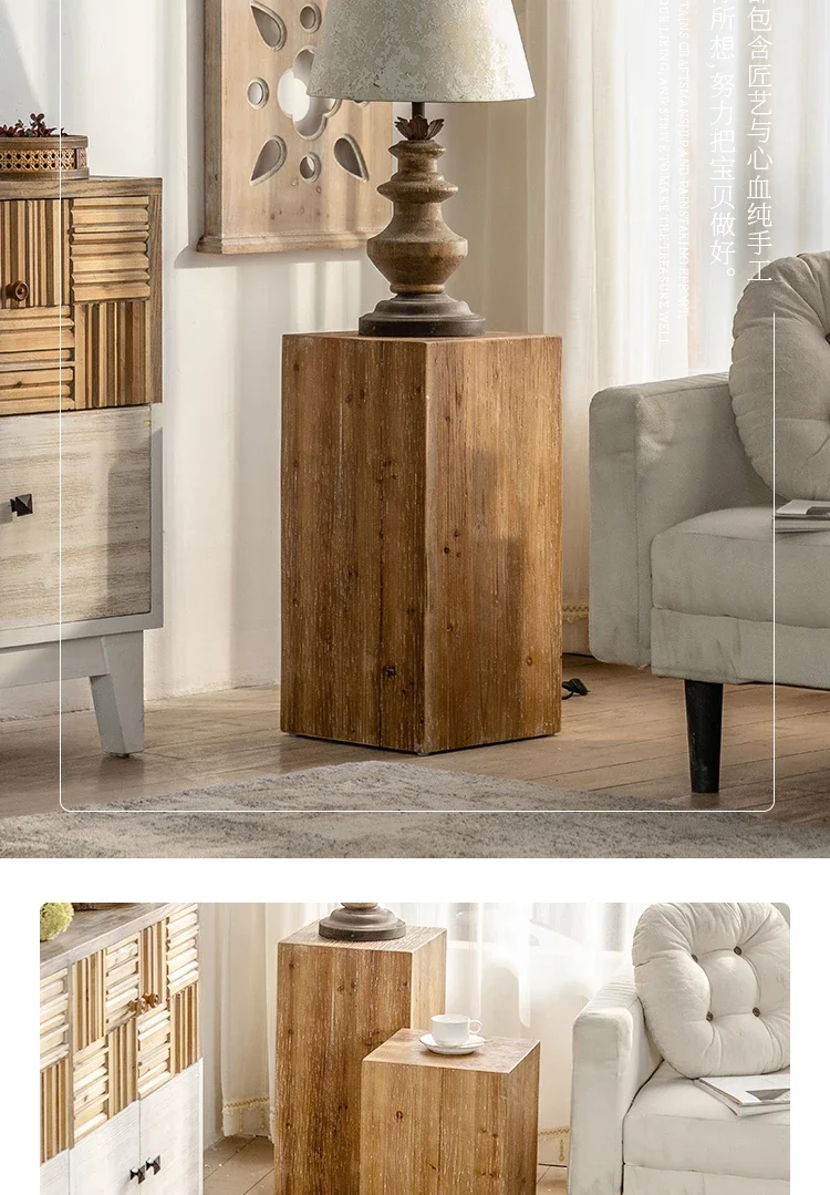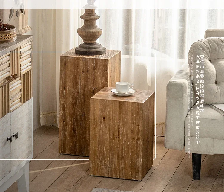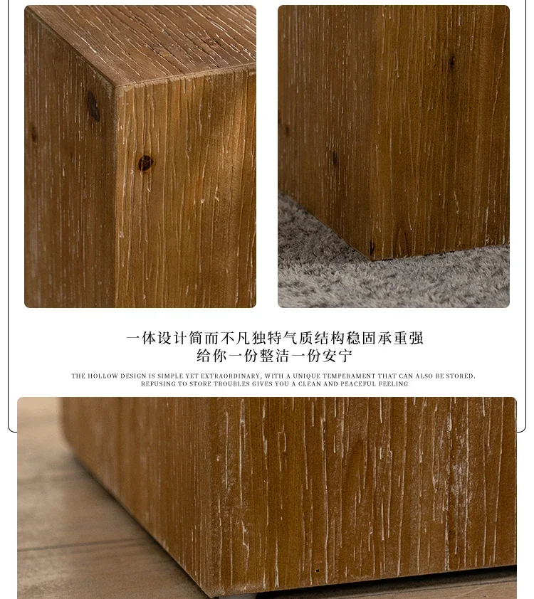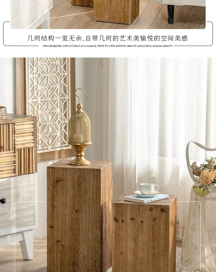 SEO Keywords: vintage side table, solid wood corner table, rustic small table, geometric art table, wooden stool, living room side table, wabi-sabi furniture, American retro table, wooden decor piece, durable wooden table