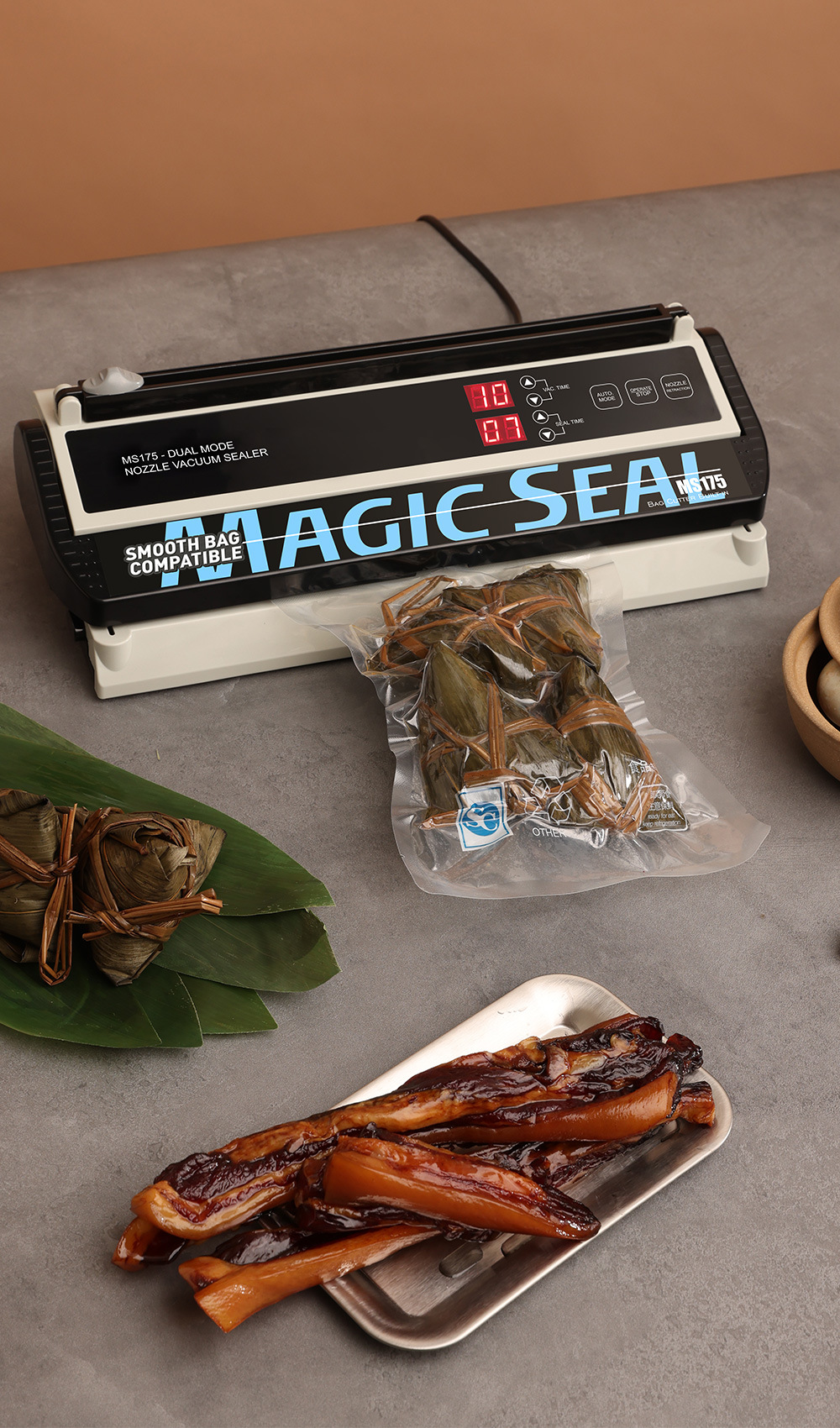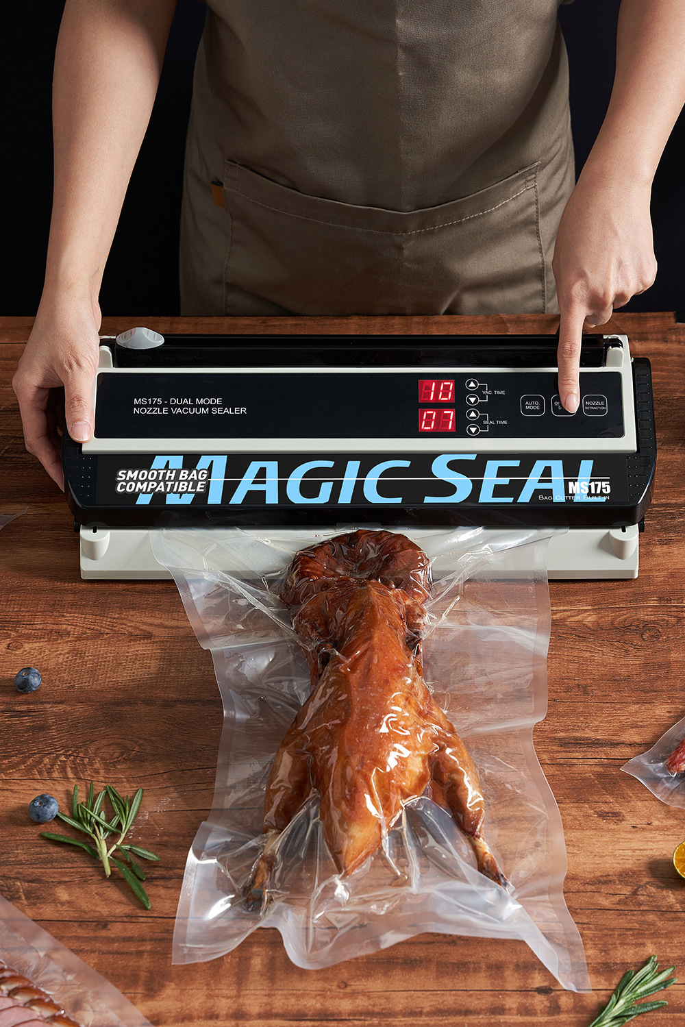 1.MS175 vacuum sealing machine is applicable to smooth surface vacuum bags.Advantages of smooth bag: low cost, various forms.