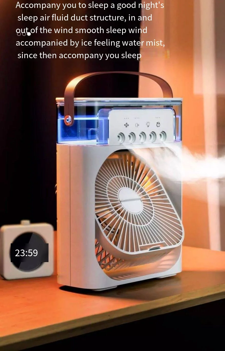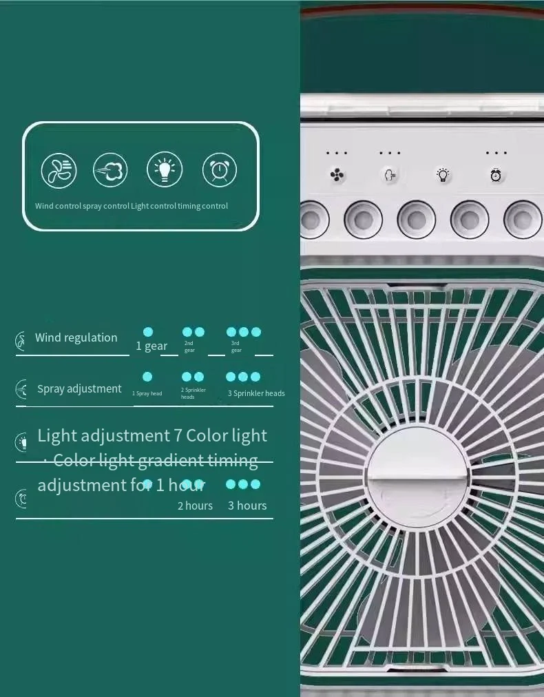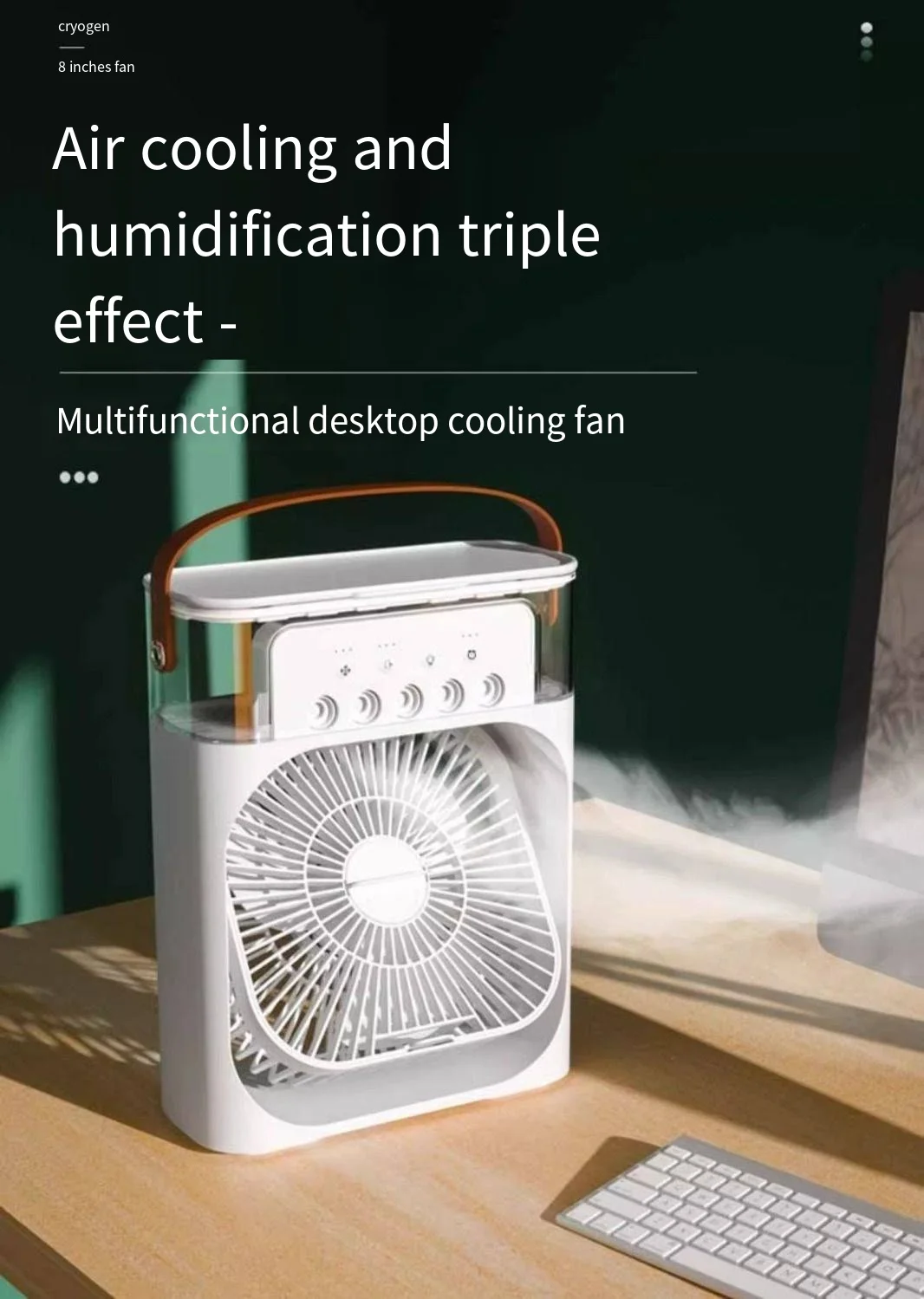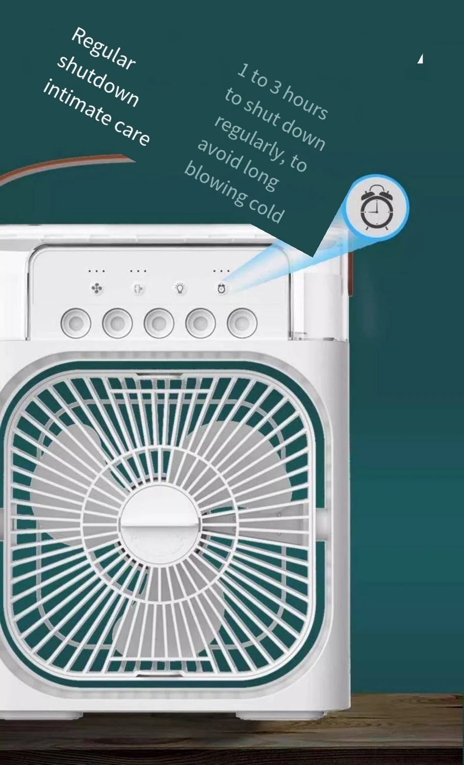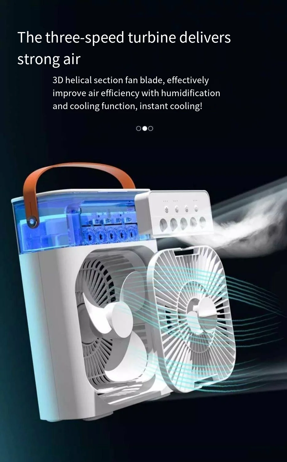 1.3-in-1 Multifunctional Design: Combines a USB electric fan, air cooler, and humidifier in one compact device, offering cooling, air purification, and moisture control all at once.