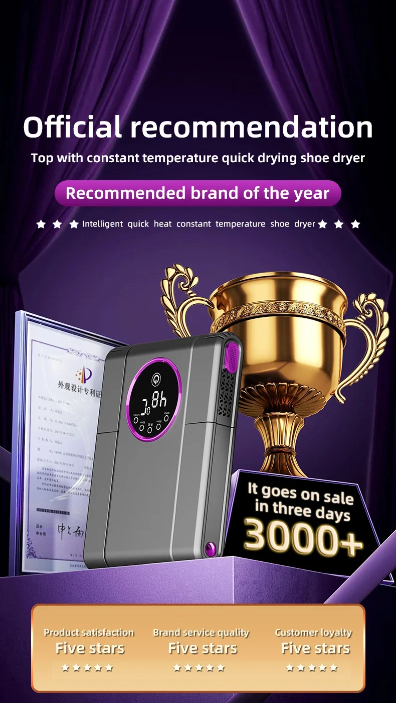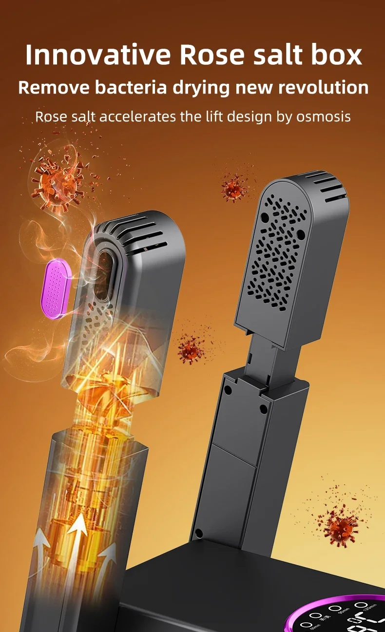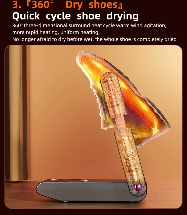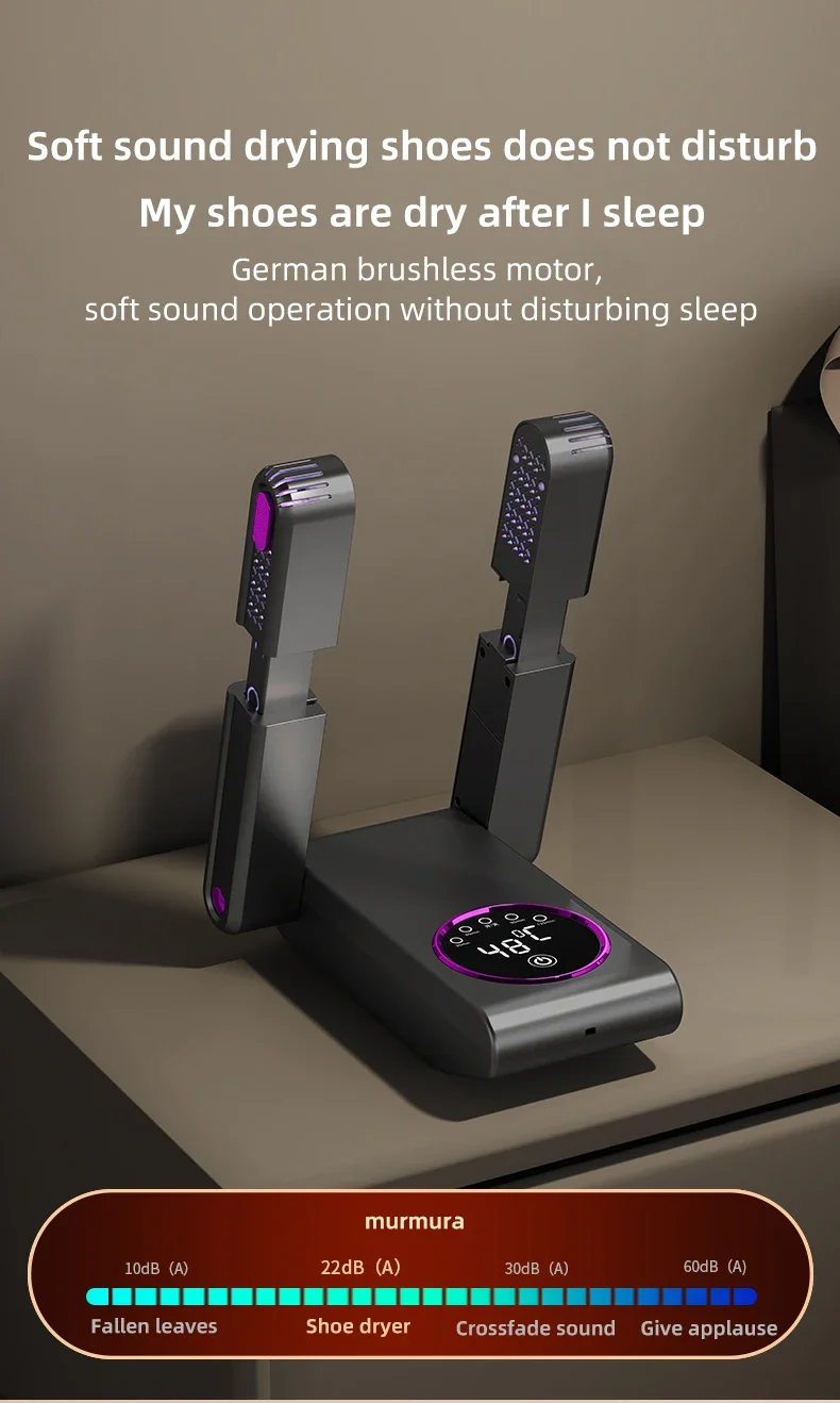 Our boot dryer operates silently and gently heats the air to lift and dry your shoes in just 1 hour. Forced air heats keep in 48℃, ensuring your items are dry and ready to use. (Recommended for indoor use for optimal performance)