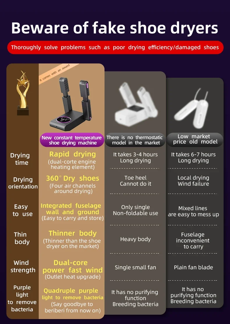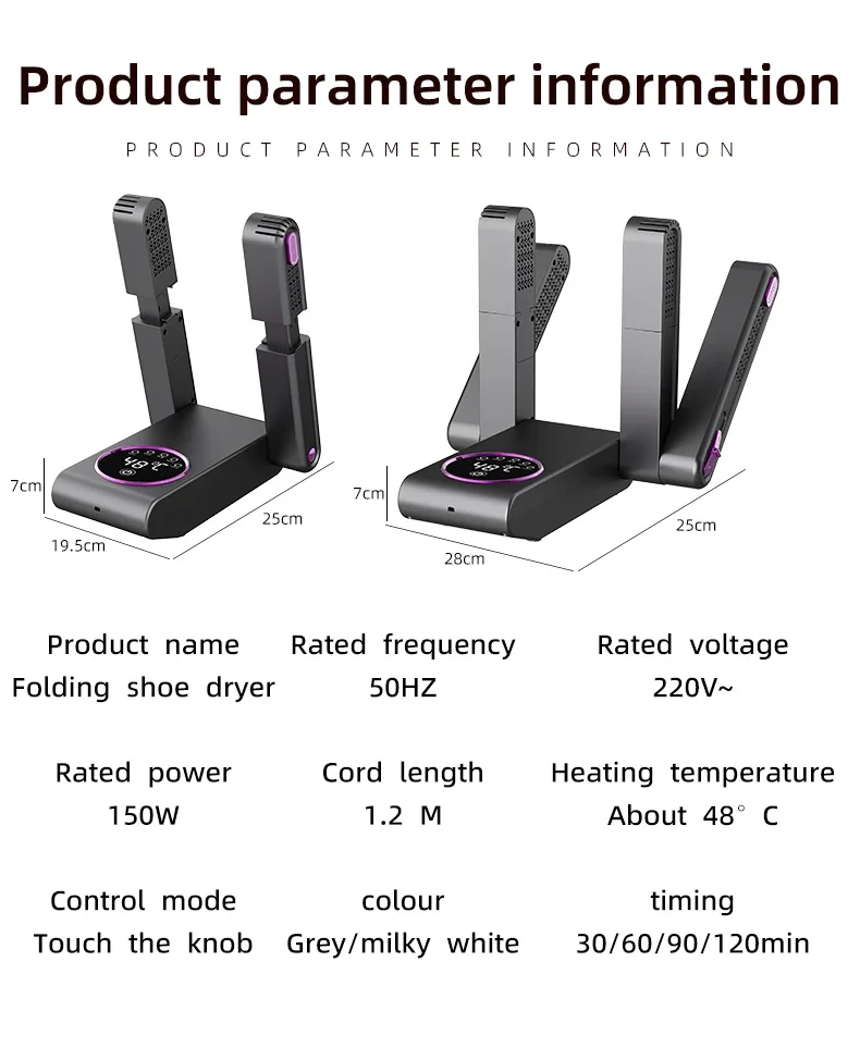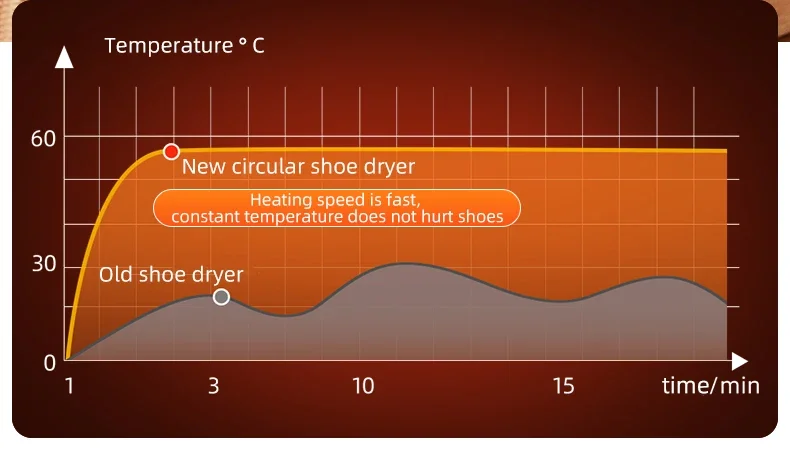 2-hour auto-off timer saves energy and customizes your drying cycle. Set different working times for different types of shoes to easily reduce power consumption.