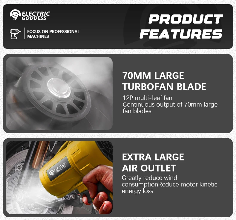 - Quality Materials: The whole casing is made of high hardness and high temperature resistant materials, providing strong power for quick drying of surfaces, suitable for a variety of needs. Built-in large-size fan blades, precision machined, wear-resistant and durable.