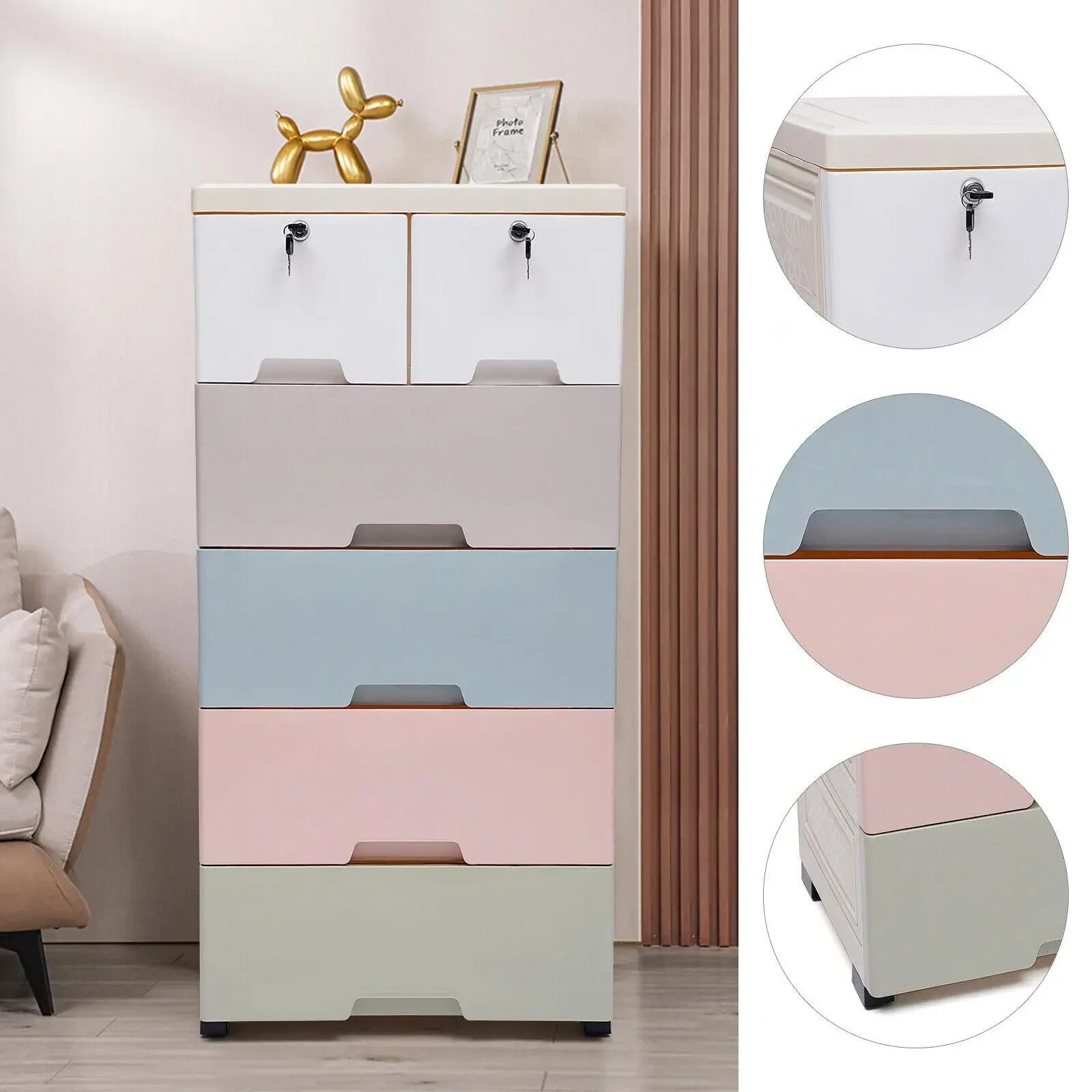 Plastic Wardrobe Kids Drawers Storage with 6 Drawers Closet Dresser Organizer Bedroom Furniture for Clothes