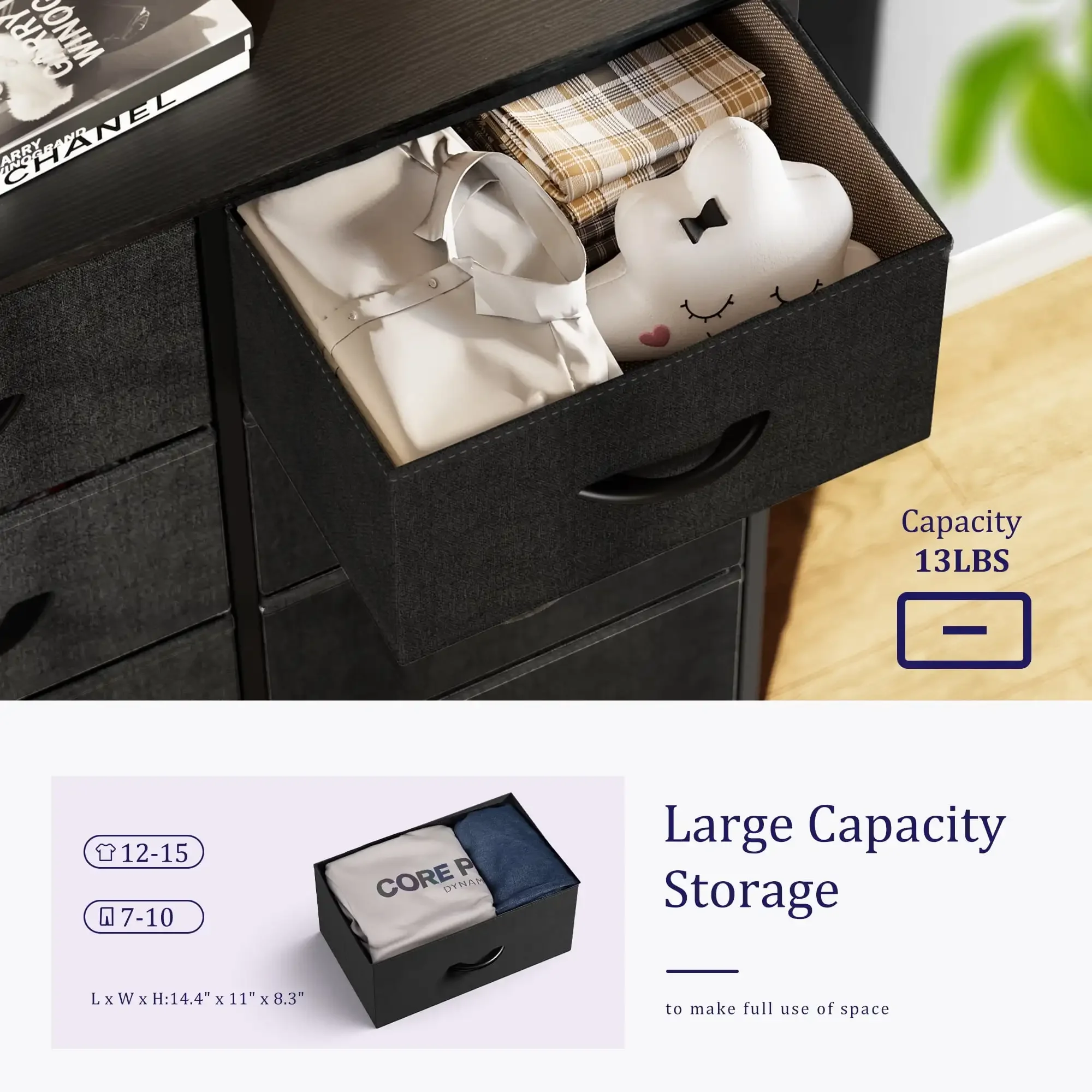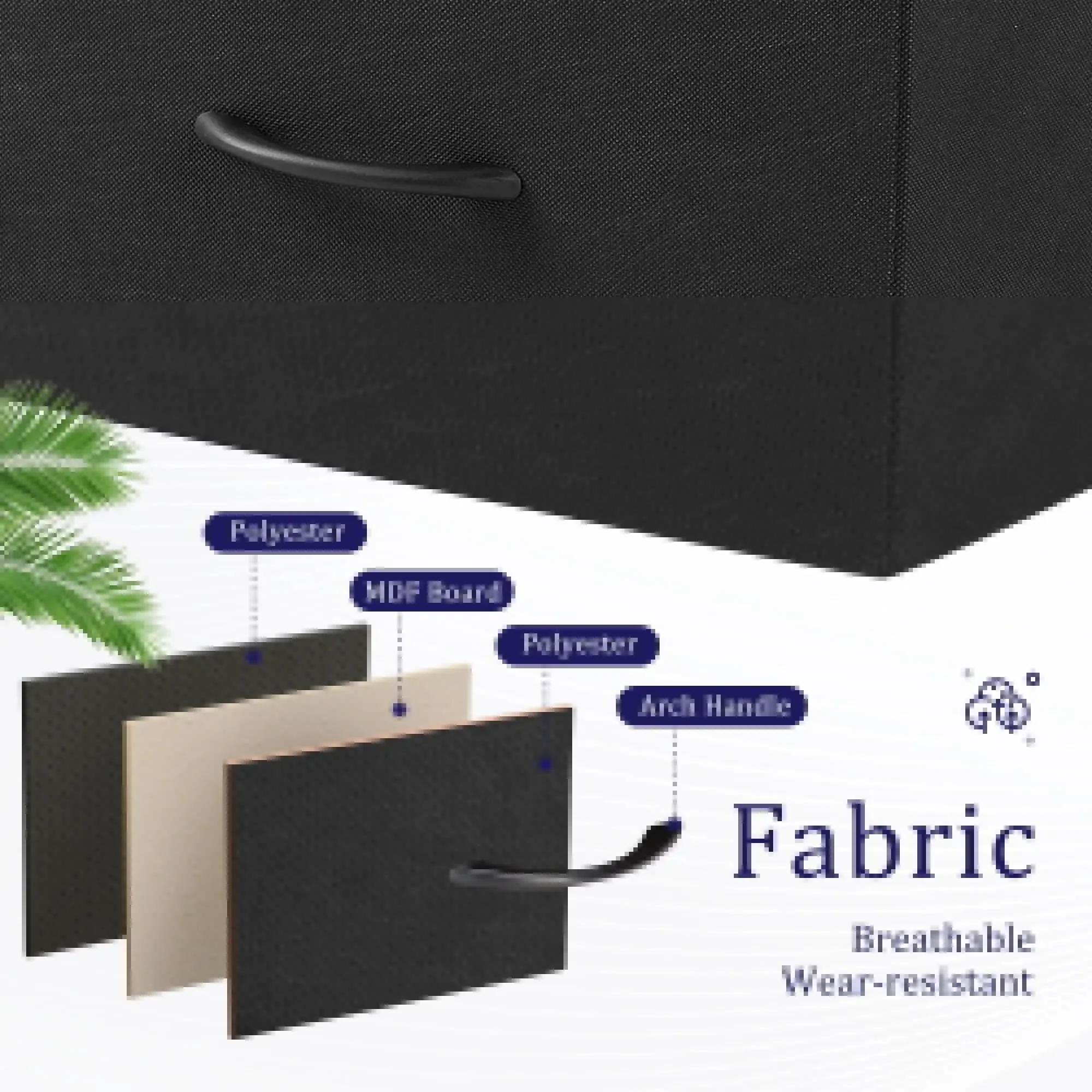 • Constructed with a high-quality steel frame and premium non-woven fabric, this storage dresser ensures a long lifespan. The thick wood board provides excellent support for your daily necessities, while the metal foot guarantees stability.