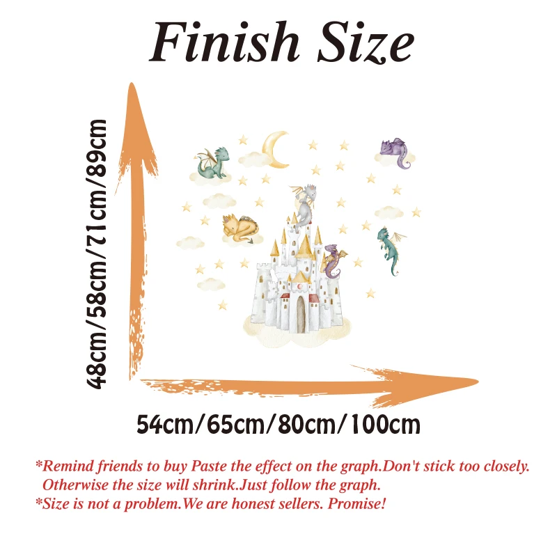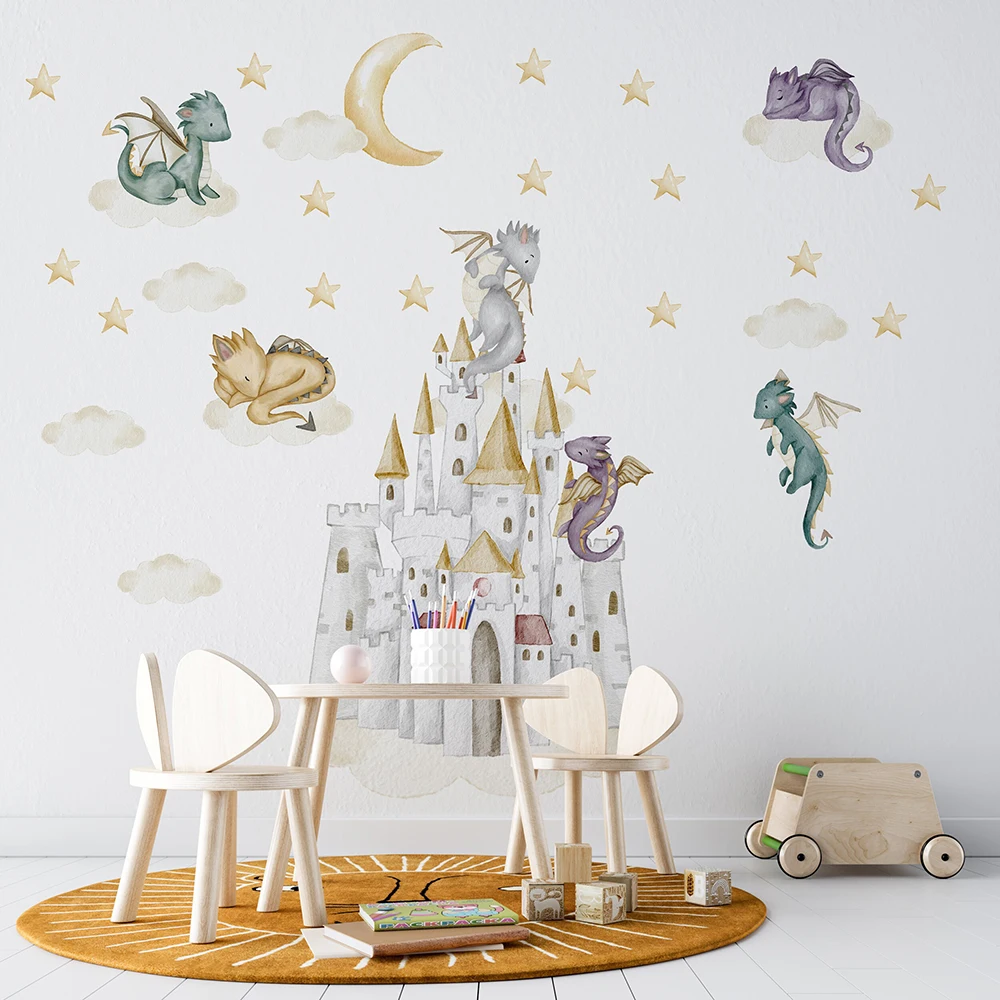 Watercolor Dragon Castle Cloud Star Wall Sticker Baby Nursery