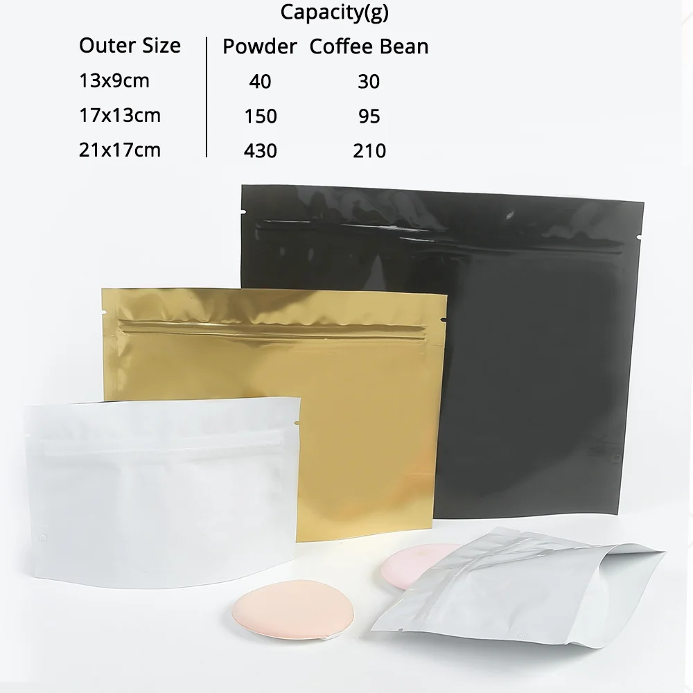 100pc High Quality Aluminum Foil Mylar Coffee Storage Bags Stand Up Heat Sealing Zip Lock Pouches Eco Smell Proof Packaging Bags