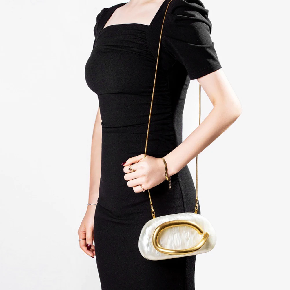 Women All-Match Shoulder Bag with Chain Versatile Sling Bag Acrylic Elegant Evening Bag Shopping Travel Party Phone Bag