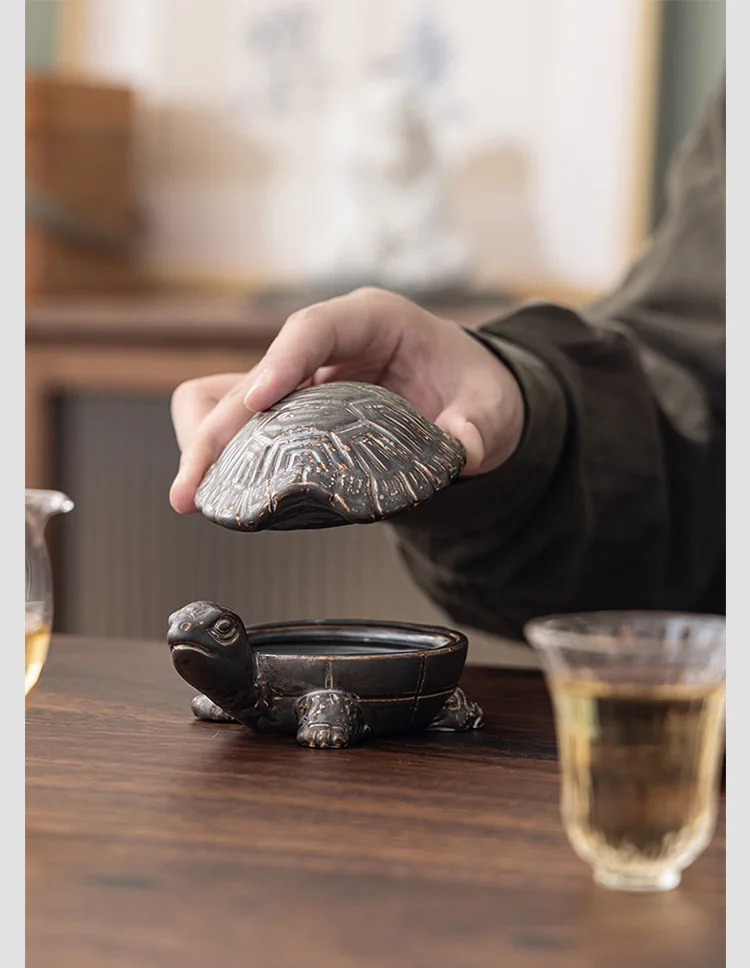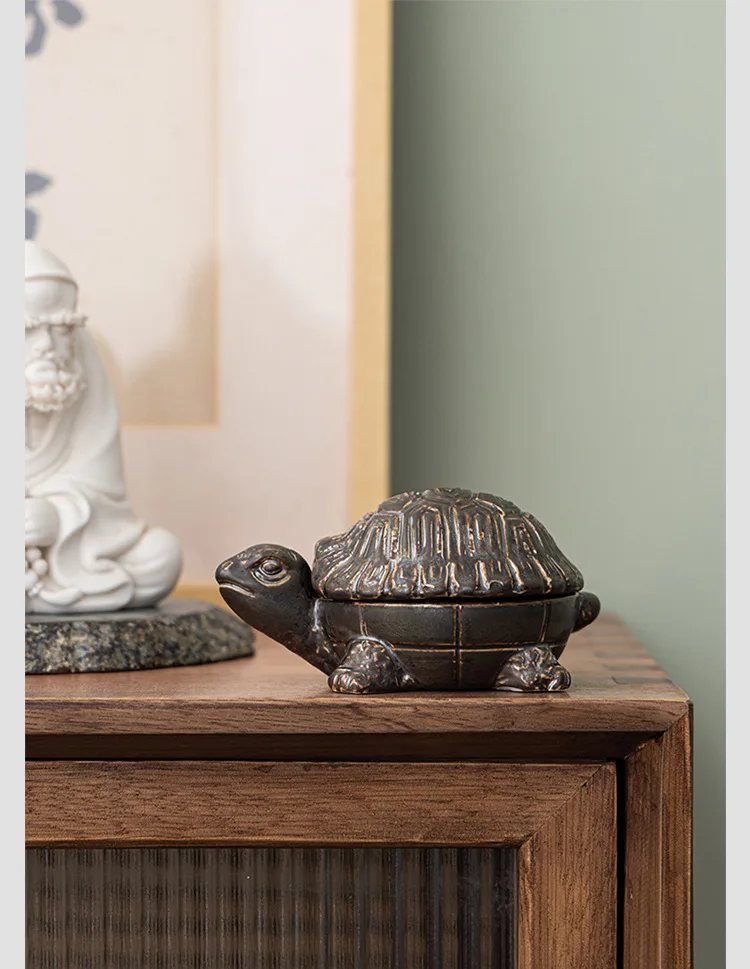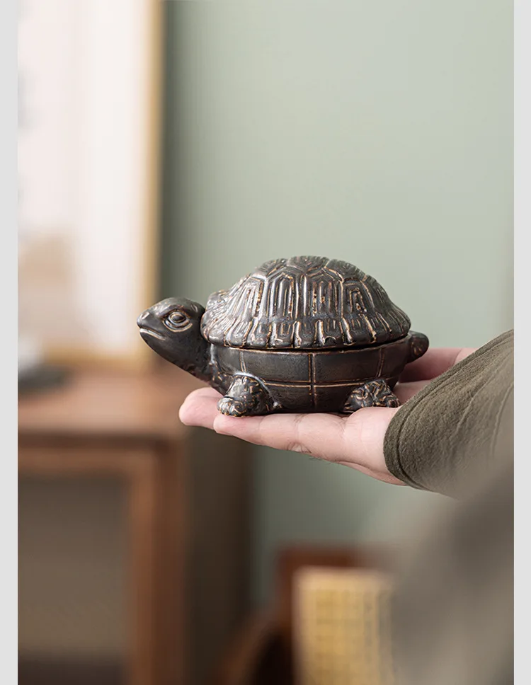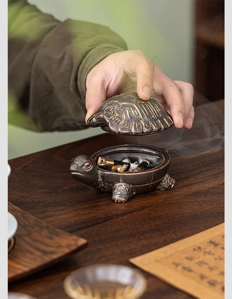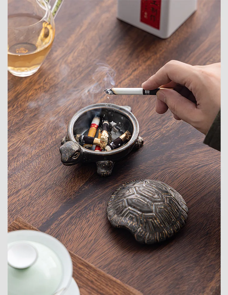 Retro turtle Ashtray Living Room with Lid Anti Fly Ash Ceramic Cigar Ashtray Decoration Chinese Home Decoration Art Friend Gift