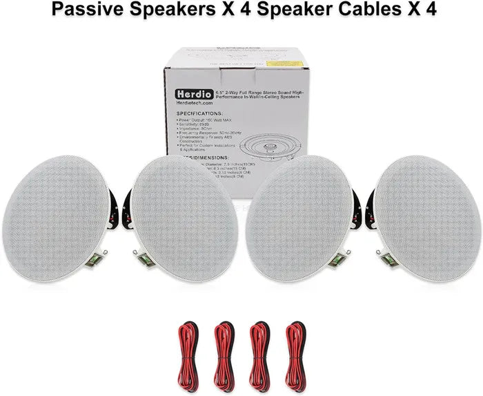 Herdio 4PCS In Ceiling Speakers 6.5'' 600 Watts Flush Mount Passive Wired Speakers For Home Bathroom Kitchen Living Room Office