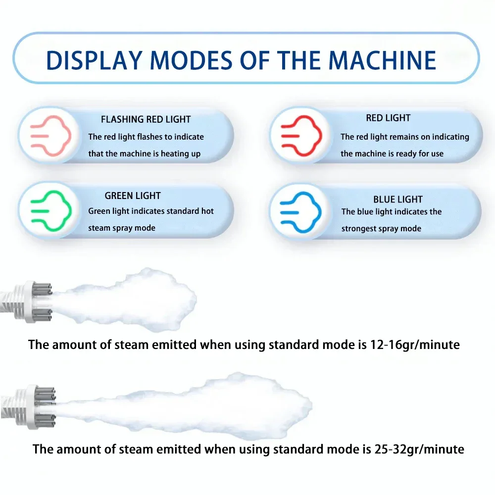 Steam volume: small gear 12-16g/min, high gear 25-32g/min