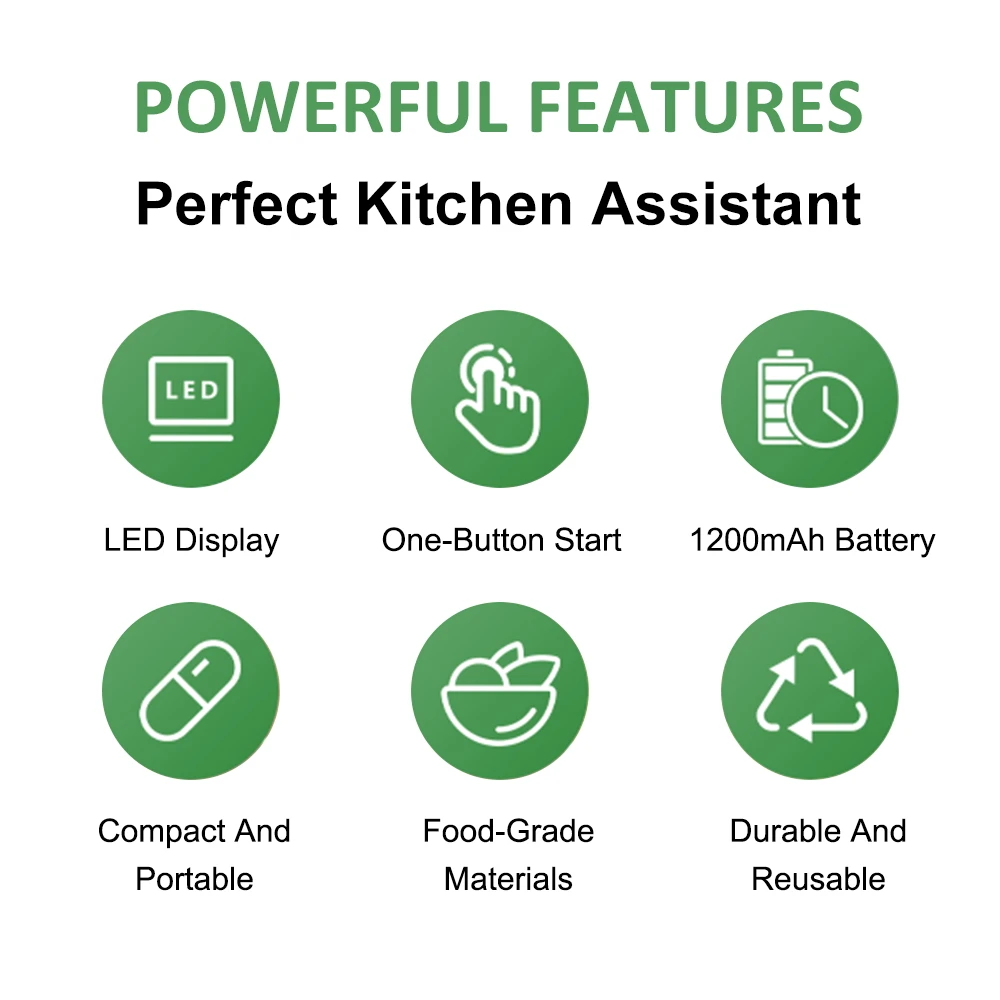【Electric vacuum pump, free your hands】: No longer need to use both hands to press the manual vacuum pump ten or twenty times, no longer need to take out a bunch of accessories hose, take out a raugee vacuum machine, so that your desktop clutter, you use our electric vacuum pump, just press the button once, wait 20 seconds or more, you can complete the vacuum seal.