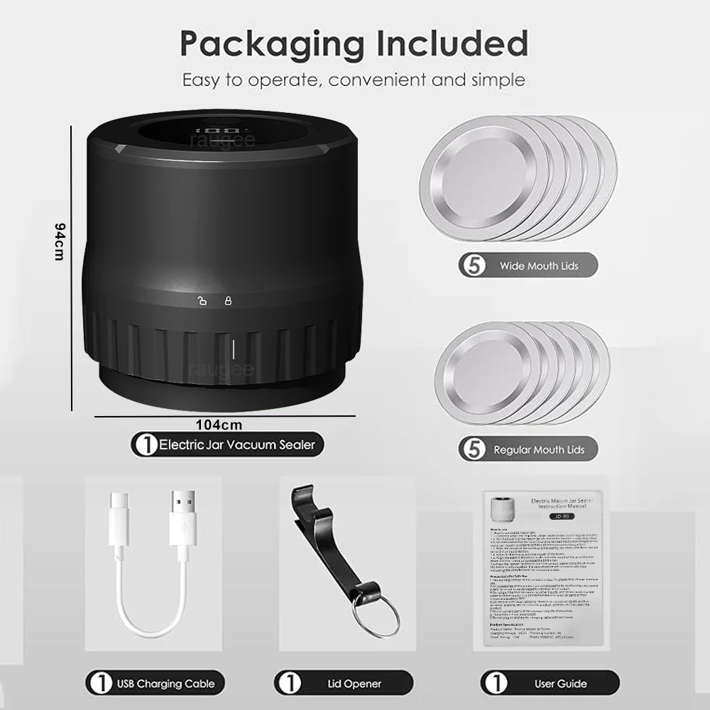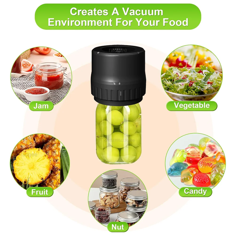 【Portable vacuum sealer】: Don't have a vacuum sealer? Don't worry!!! We offer you an raugee electric jar sealer that you can use to extract the air from your jars. The sealer is too big to carry with you when you travel or have a picnic? You can also use this electric sealer instead of it.