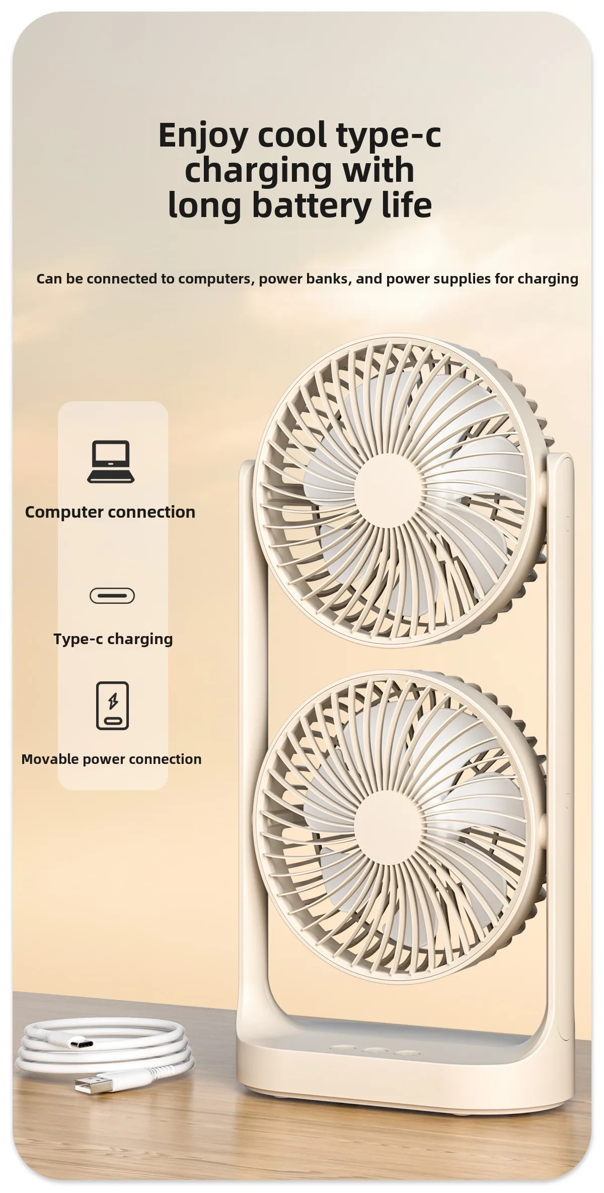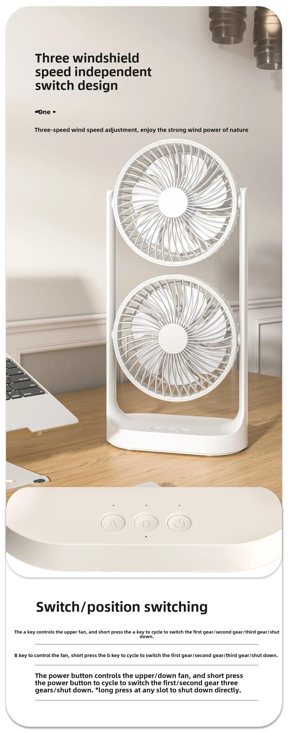 2025 new dual head desktop fan, high wind power air circulation fan, o