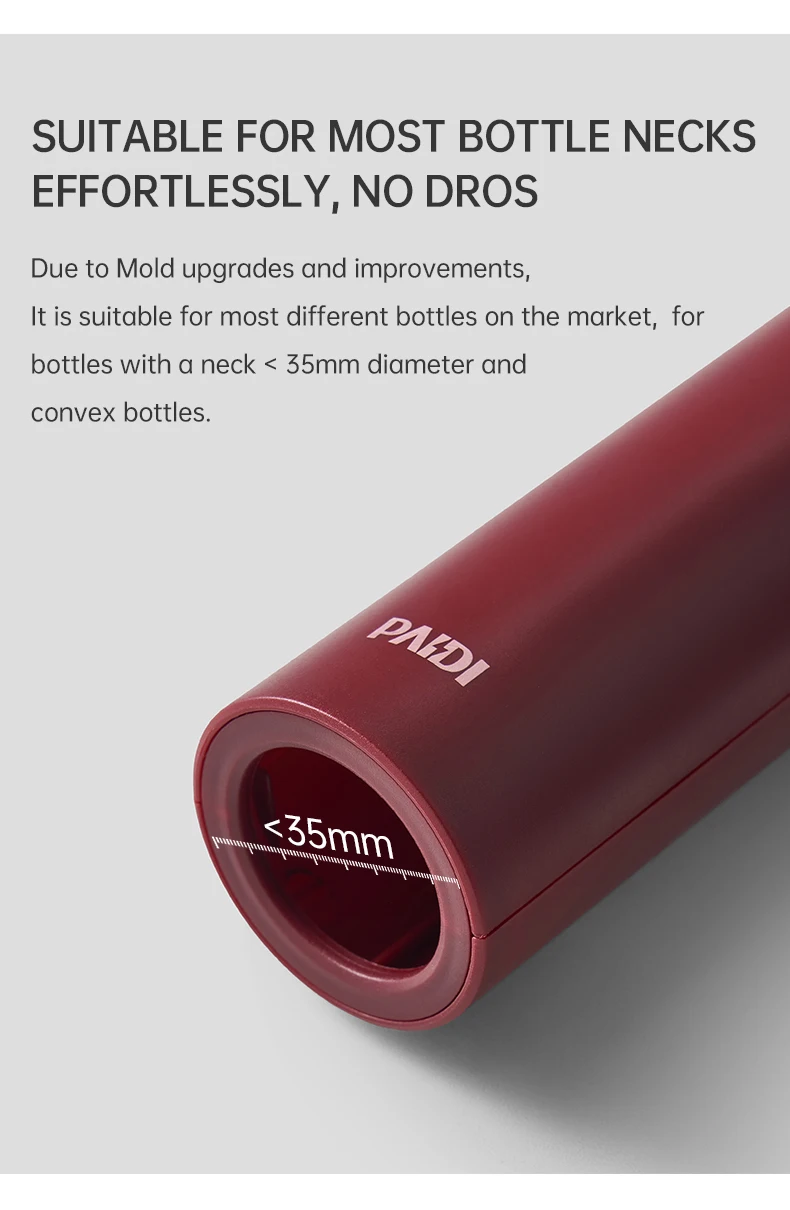 - Fits most bottles in market, <35mm