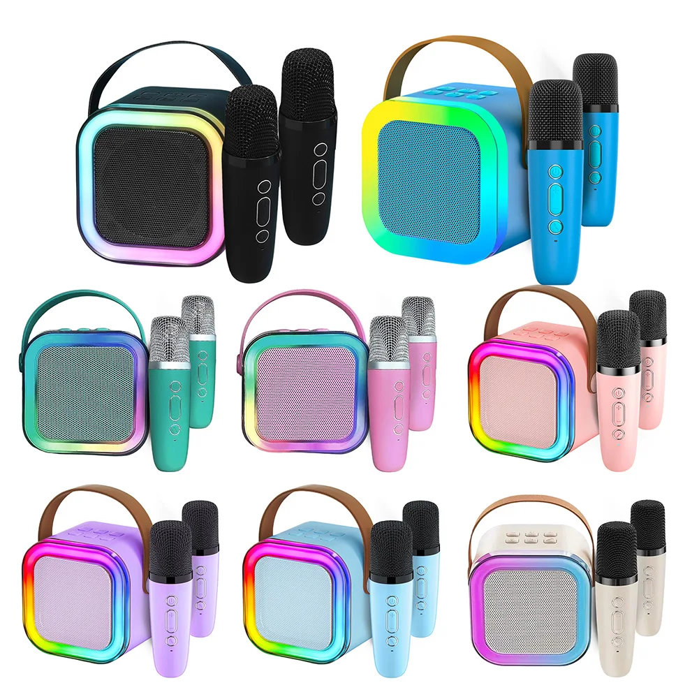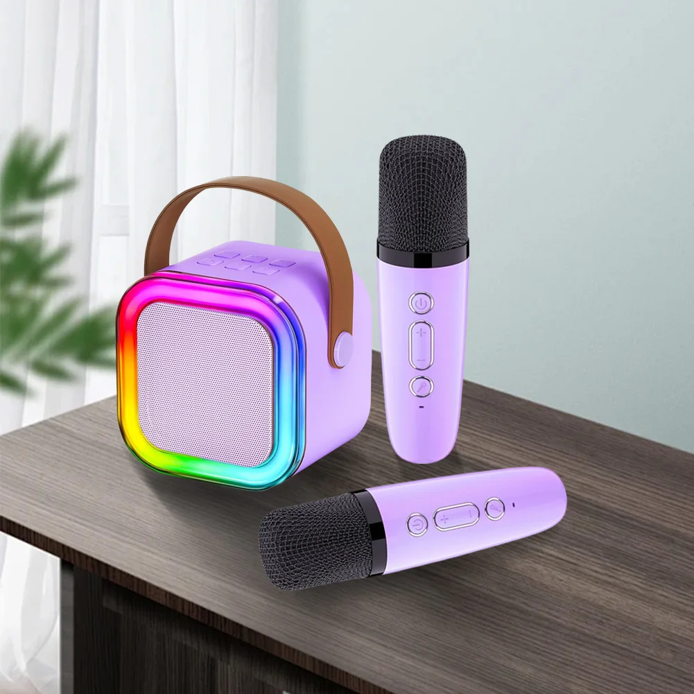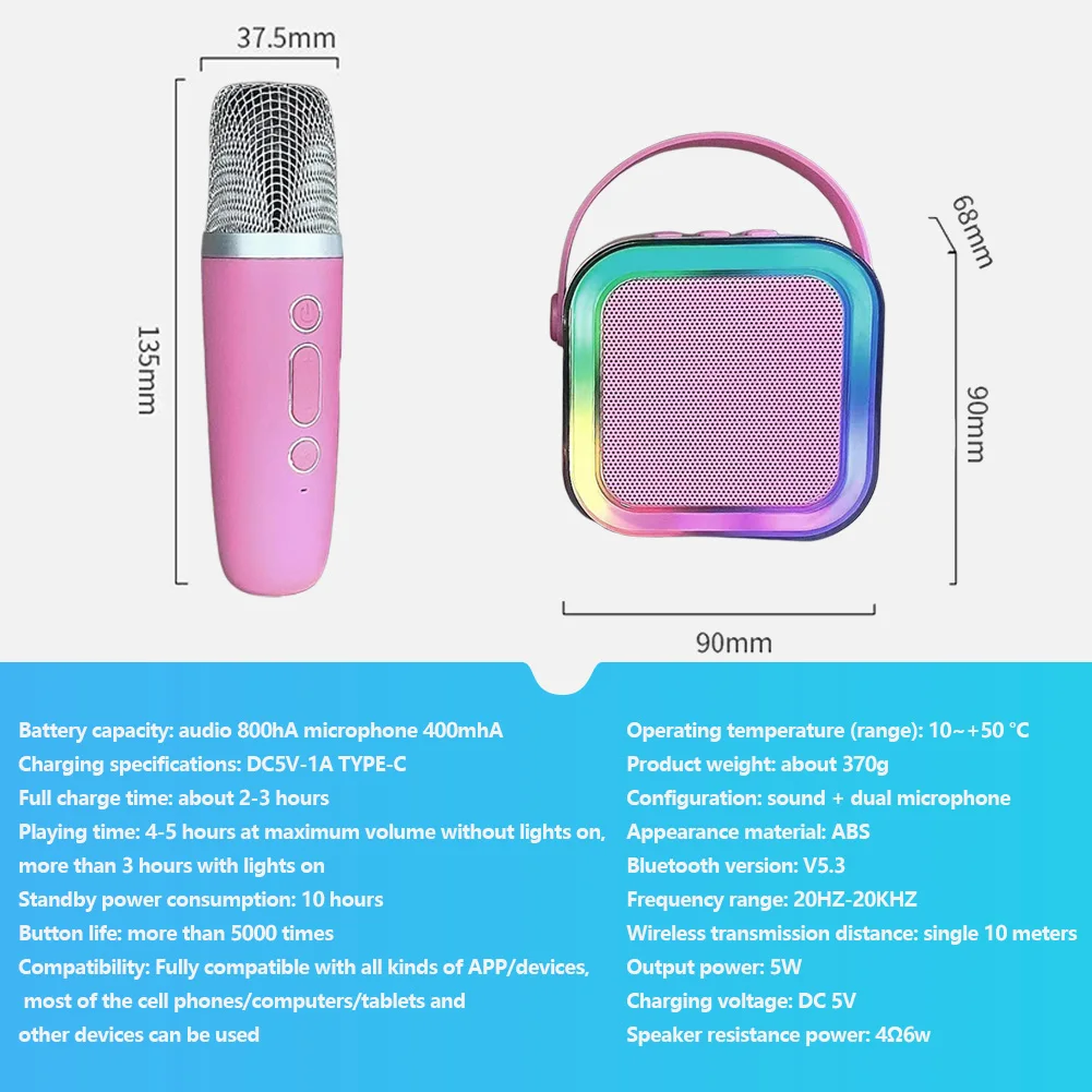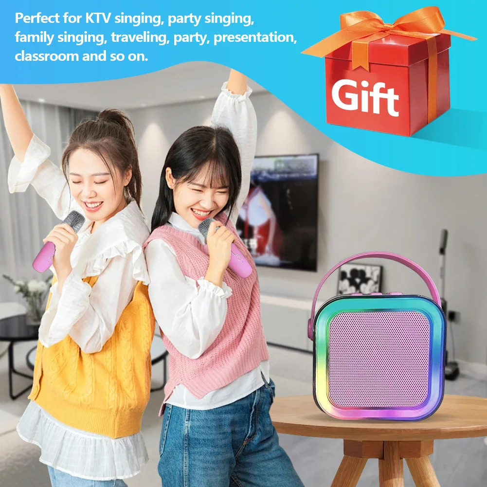 Bluetooth-Compatible 5.3 Karaoke Machine Toy with Wireless Mic Mini Home Theater Speakers Adjustable LED Lights for Home Karaoke