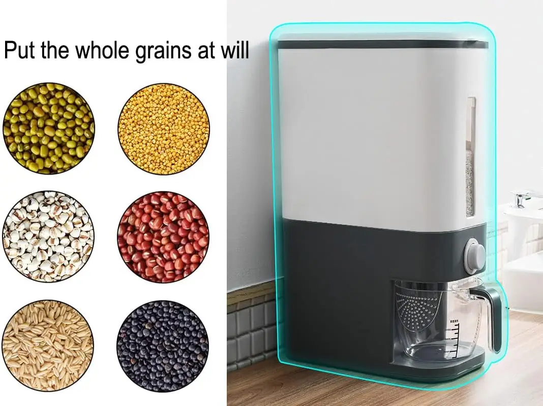 【MAKE SURE THE GRAIN IS FRESH】 These tall containers have lock lids, which can be neutral sealed to ensure maximum freshness and extend the storage time of food. This container has a good airtightness, to ensure that the grains are dry, so that the grains are fresh and healthy.Conveniently adjust and measure amounts of rice dispensed with just one touch.