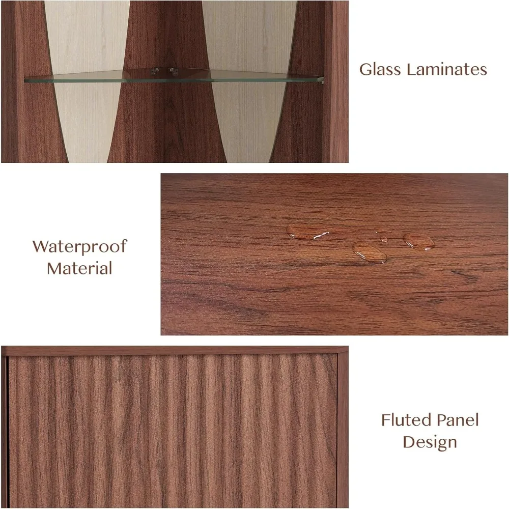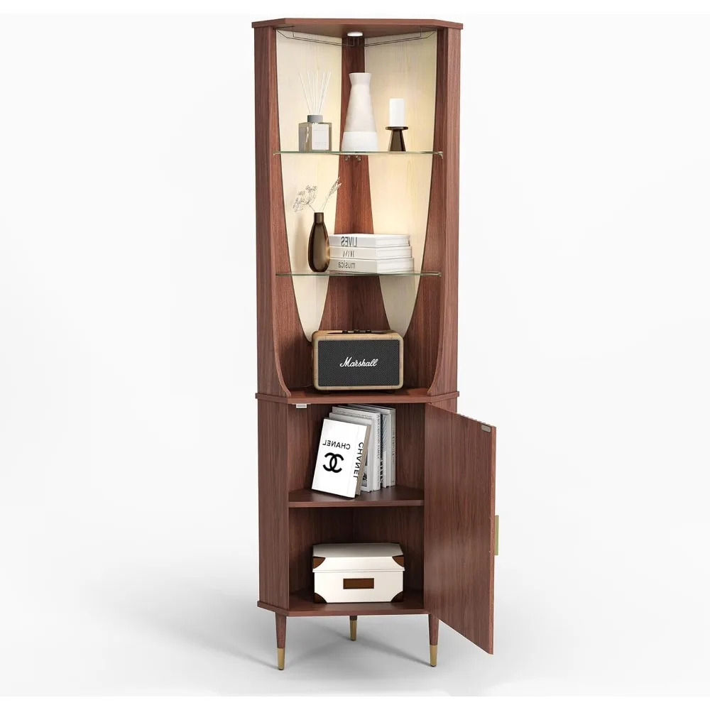 【Unique Style,Novel Design】The walnut finish of this corner cabinet adds a touch of elegance to any room,and the tall design and mid-century modern style make it a stylish choice for any space