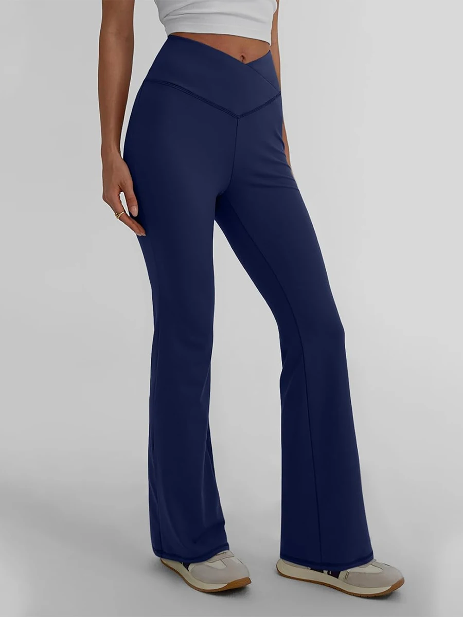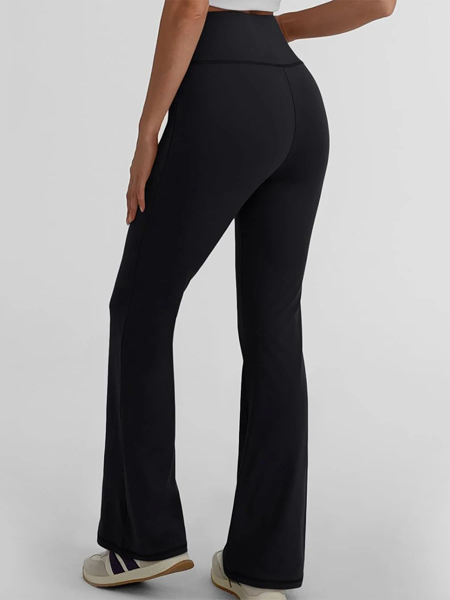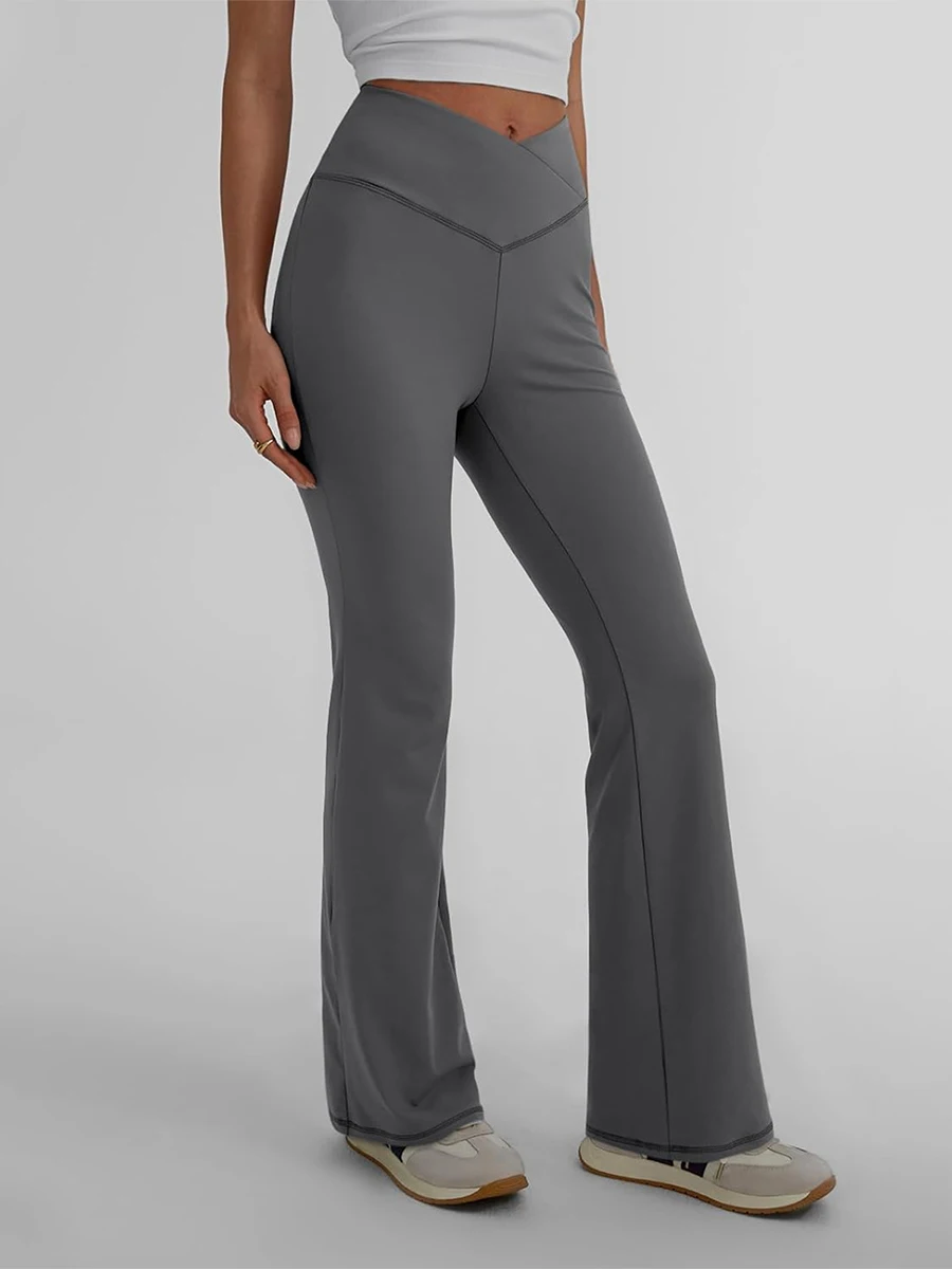 Womens Yoga Pants Crossover Tummy Control High Waist Solid Color Flare Leggings Bootcut Pants
