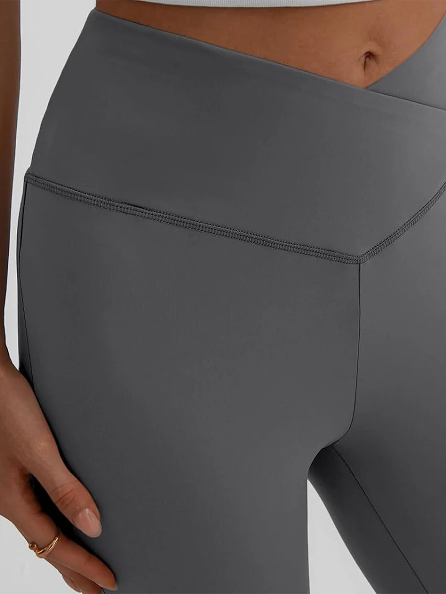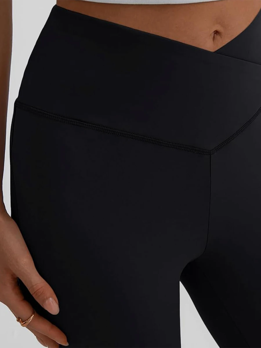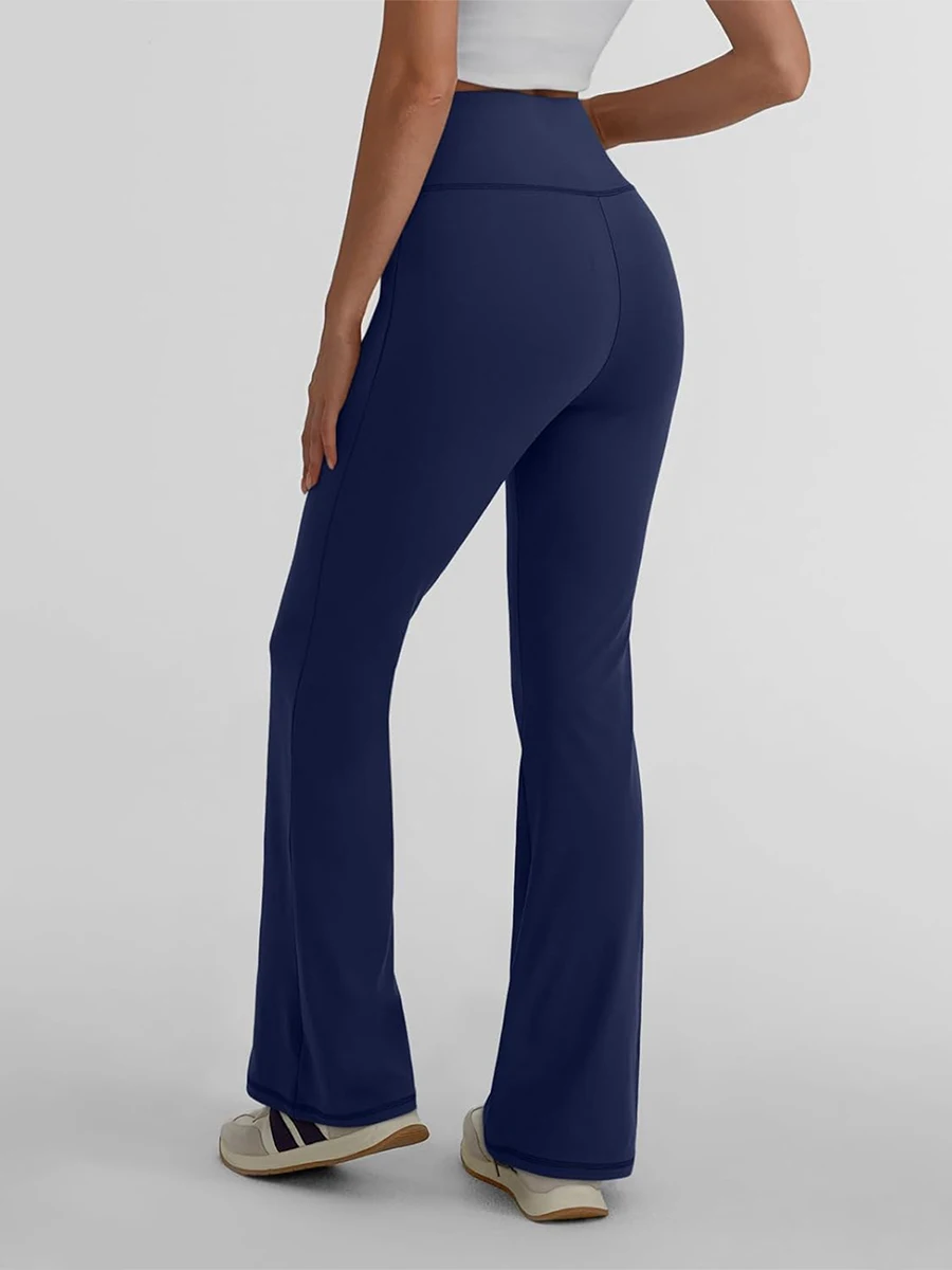Womens Yoga Pants Crossover Tummy Control High Waist Solid Color Flare Leggings Bootcut Pants